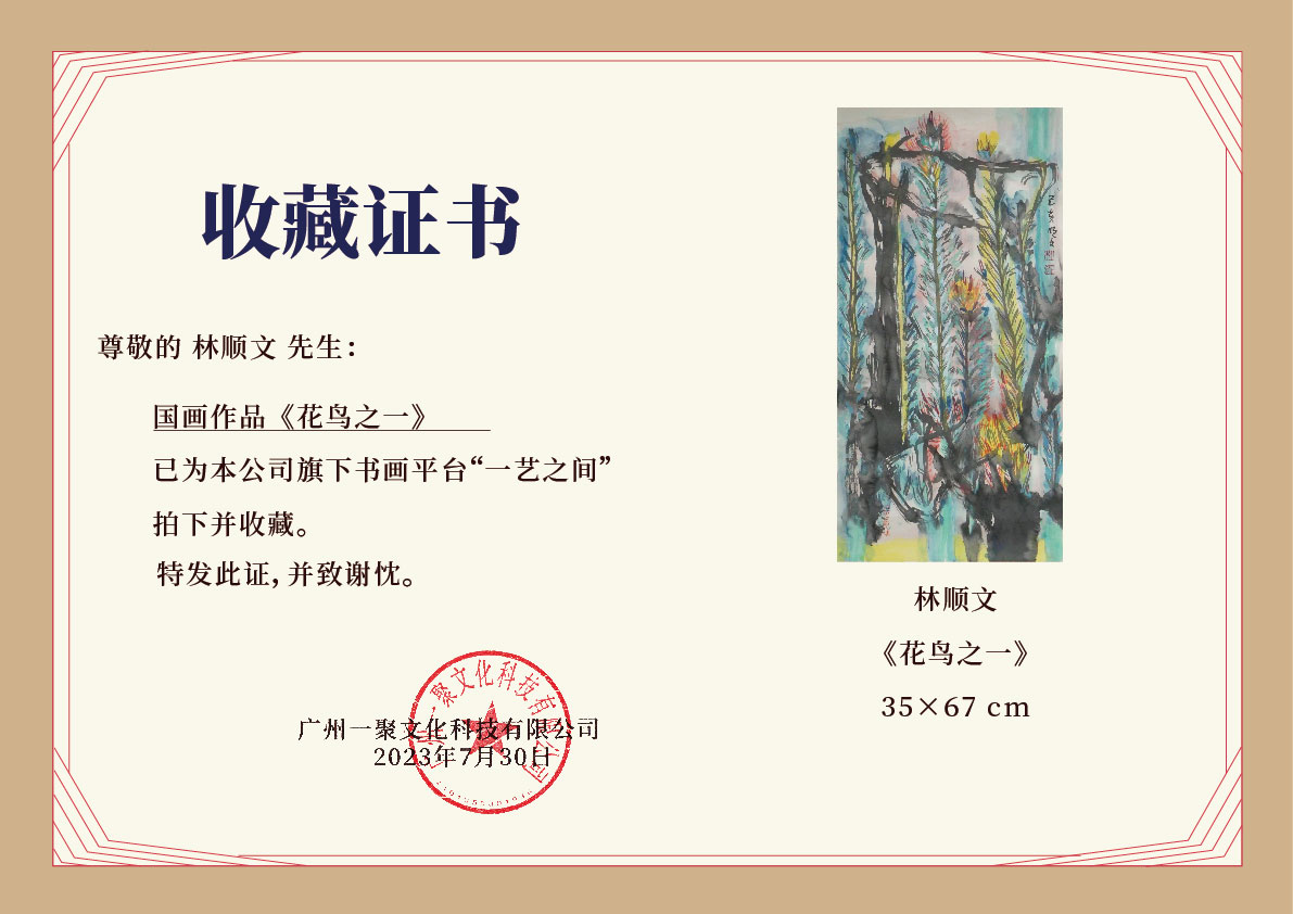 林顺文《花鸟之一》国画35CM*67CM约2平尺手绘纸本宣纸作品【原作编号GH0415】