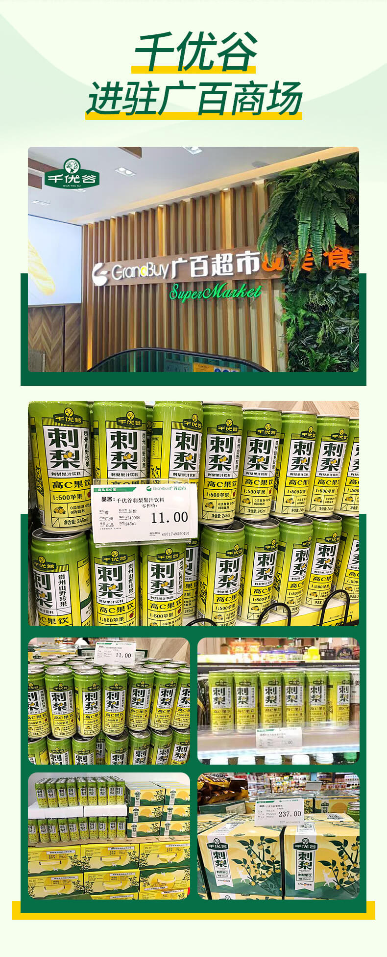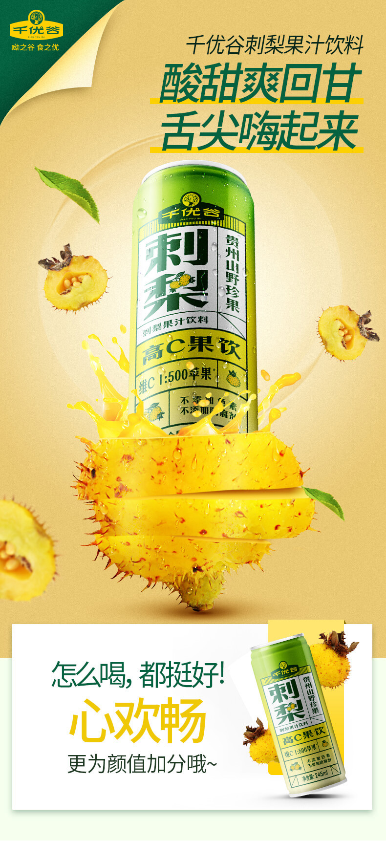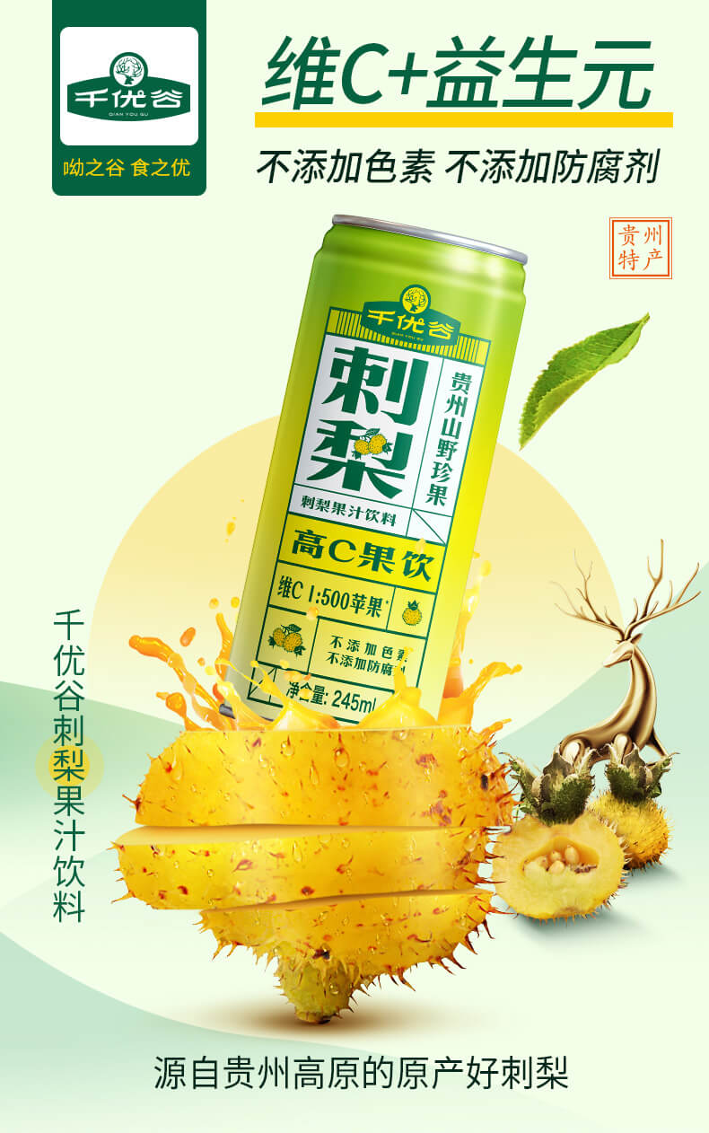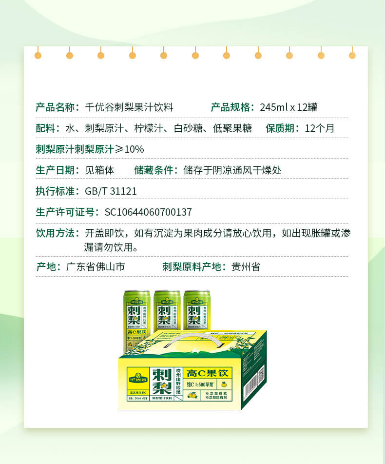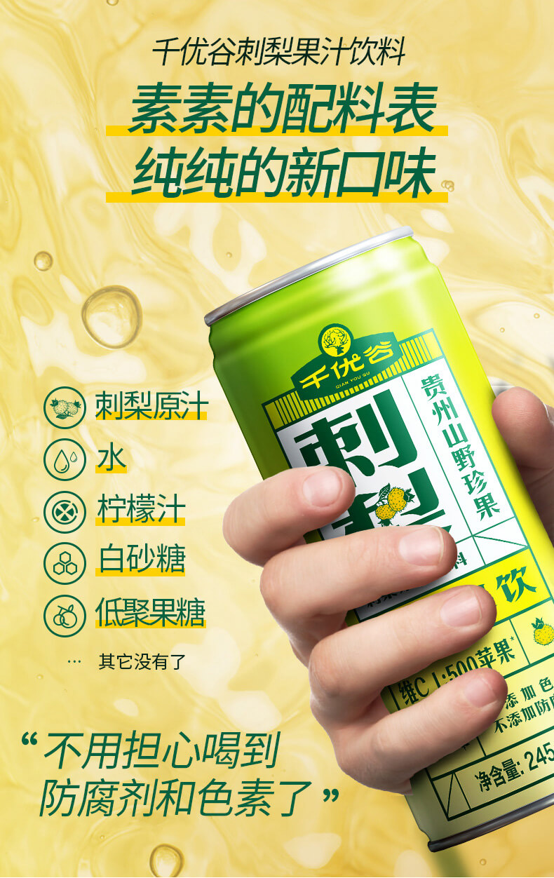 千优谷刺梨果汁饮料245ml*12罐 高C果汁饮料 无添加