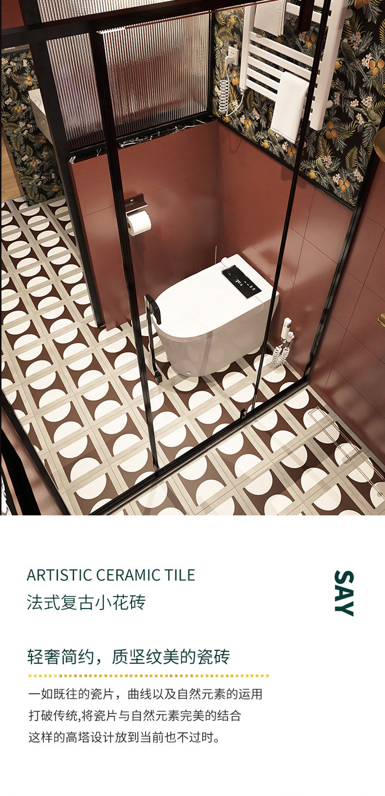 厕所瓷砖地砖法式墙砖浴室卫生间小红色厨房200x200花砖阳台复古 商品图2