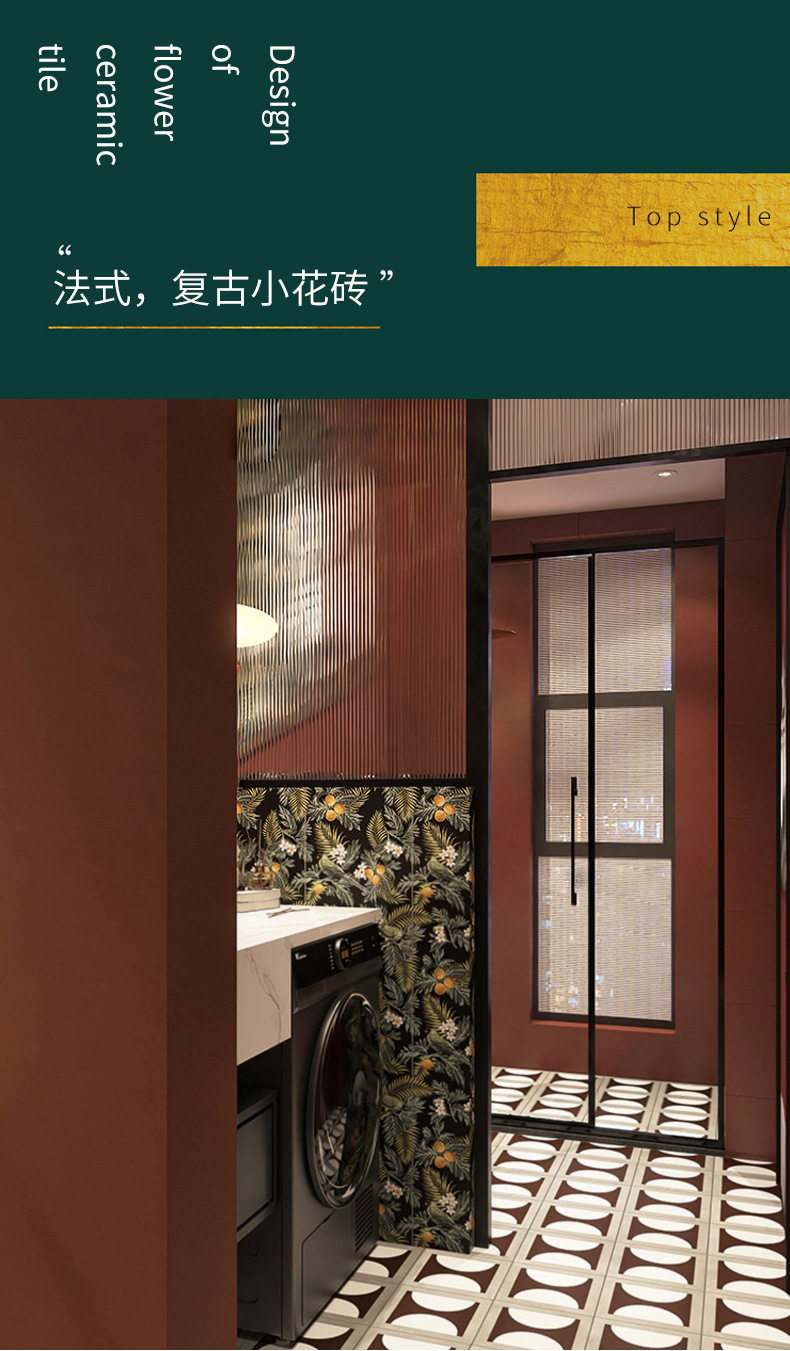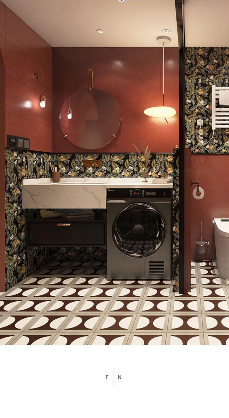 厕所瓷砖地砖法式墙砖浴室卫生间小红色厨房200x200花砖阳台复古 商品图3