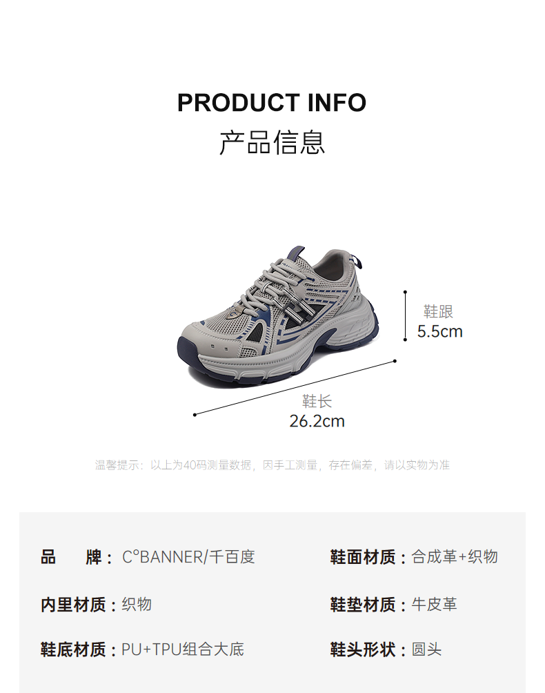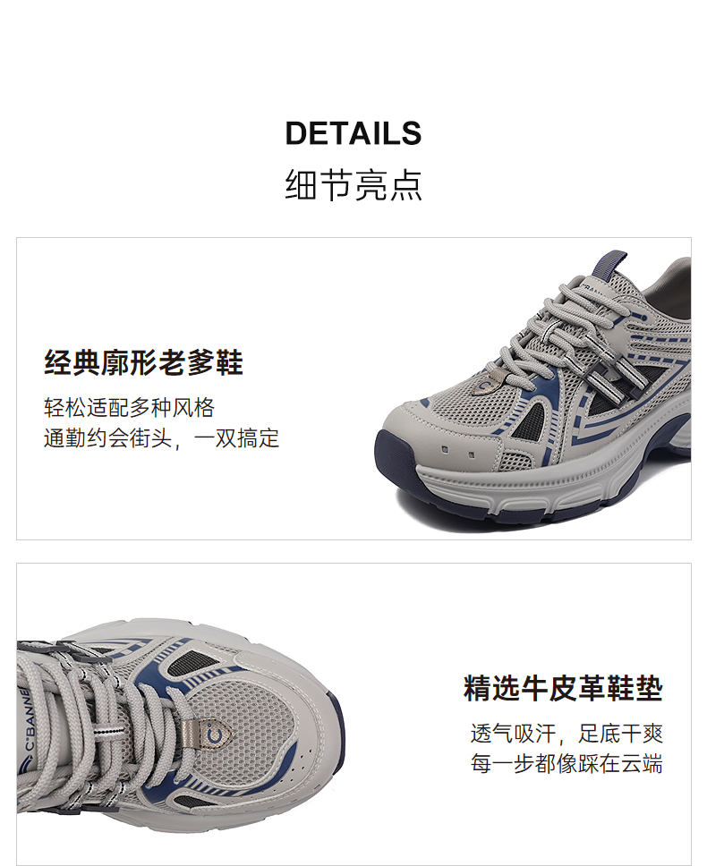 4楼千百度2025秋季经典廓形老爹鞋牛皮革脚垫男鞋老爹鞋A25491014