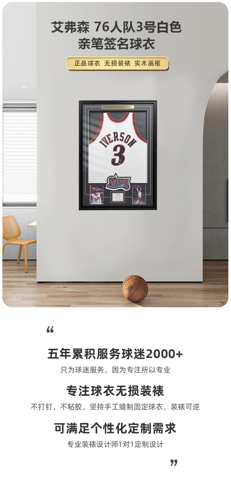 收藏系列 艾弗森 76人队3号白色 亲笔签名球衣