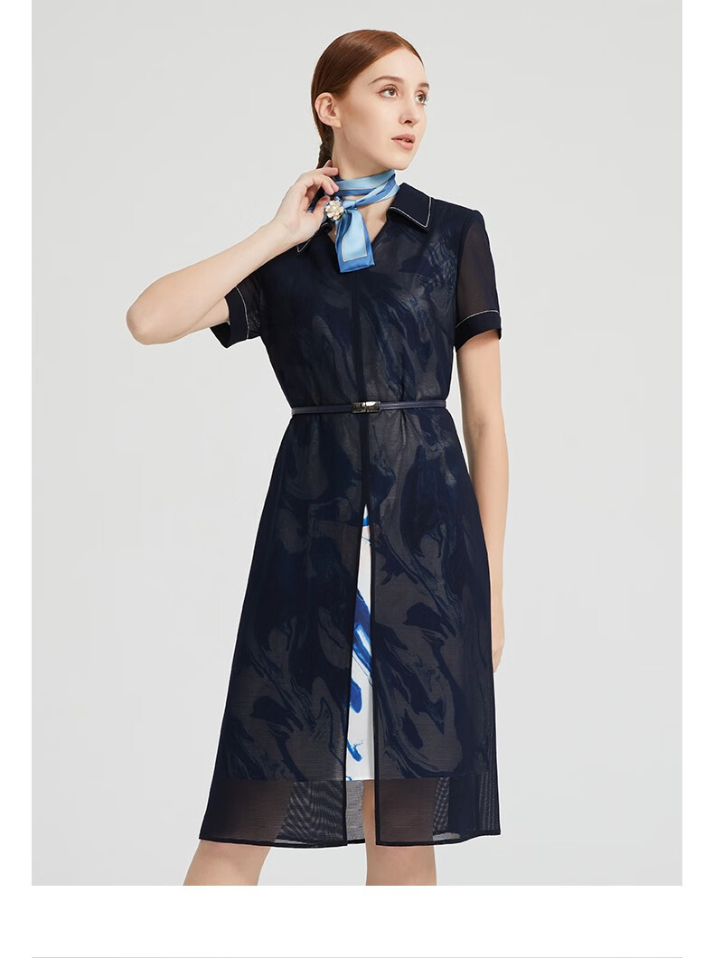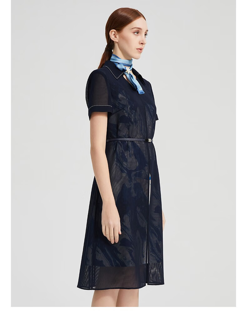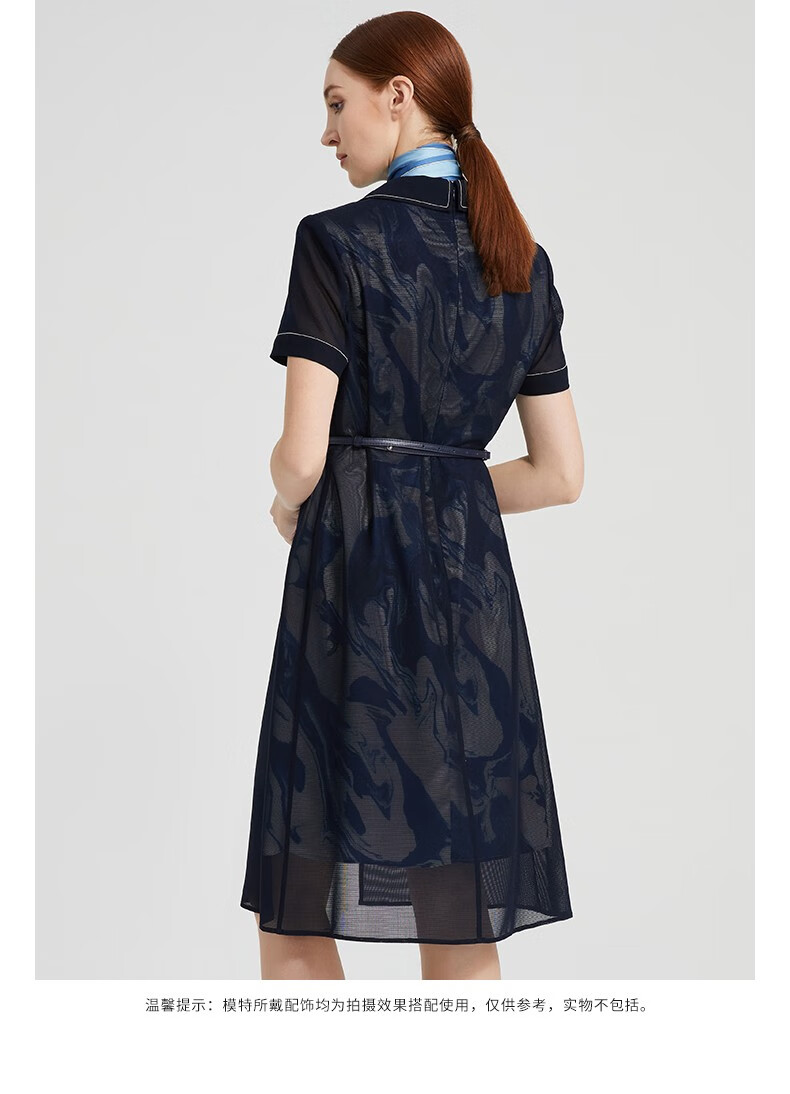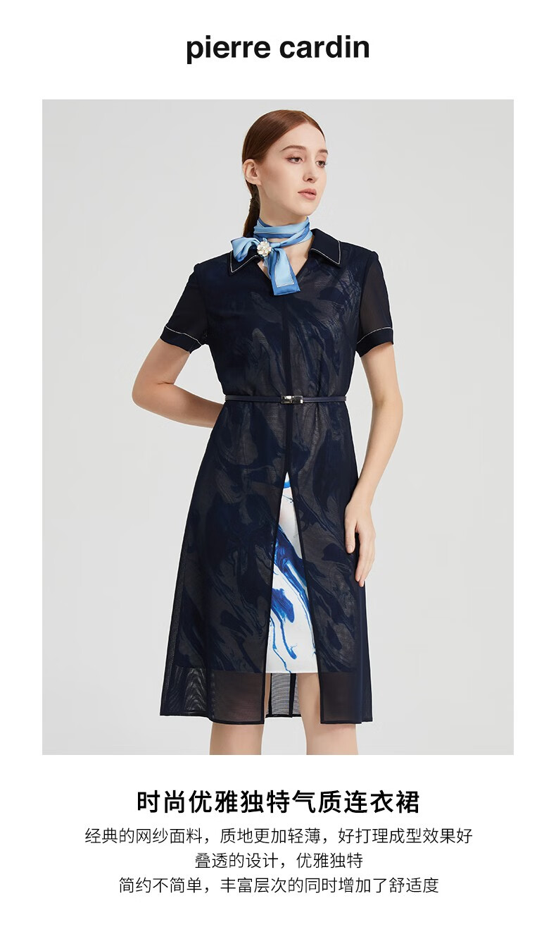 皮尔卡丹女装简约时尚拼接印花通勤收腰假两件连衣裙P2215D2012N3