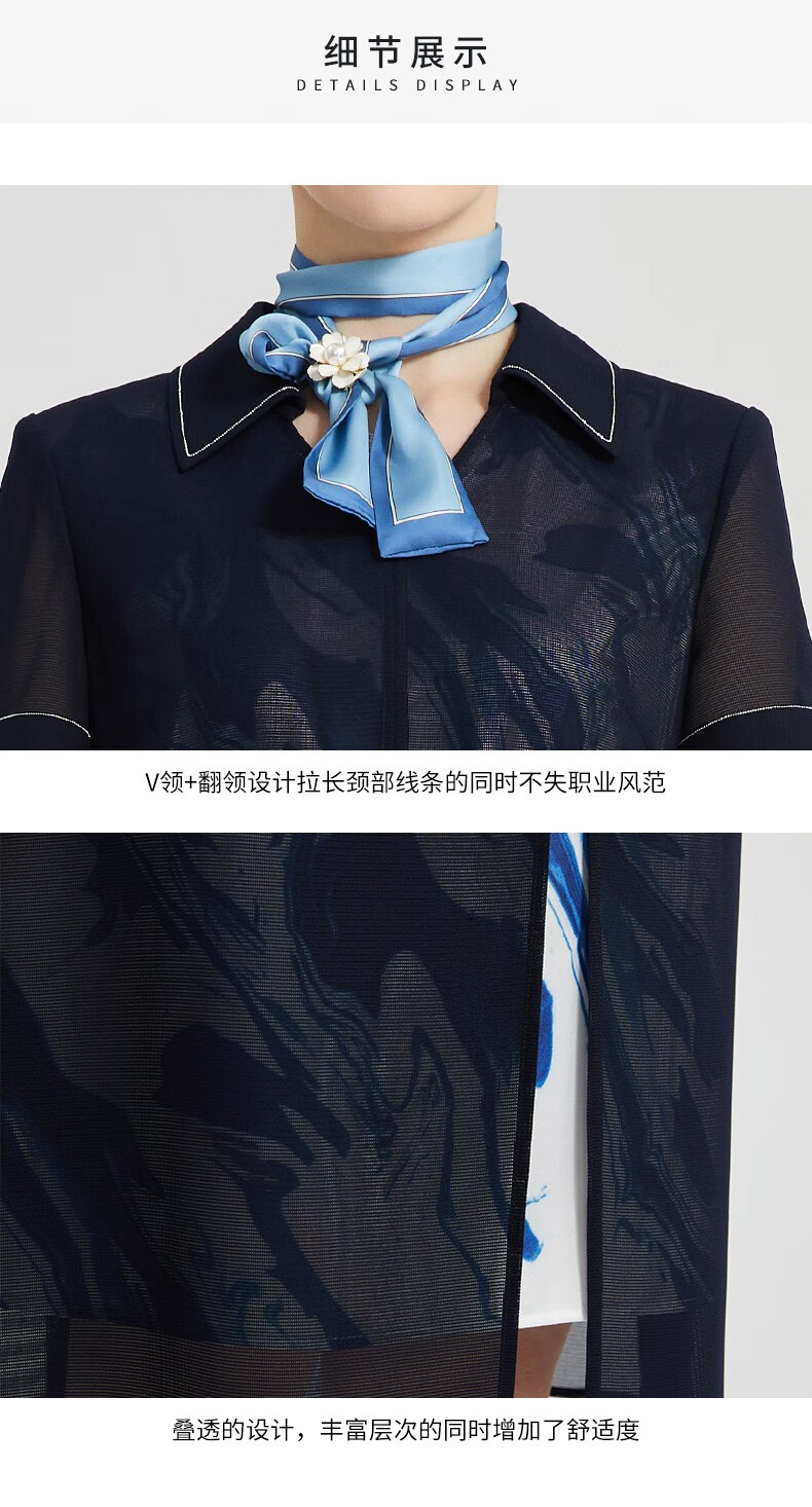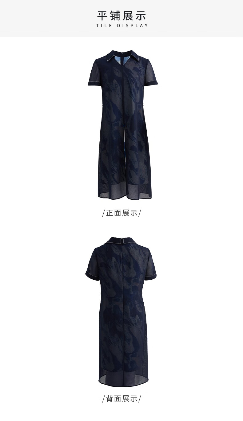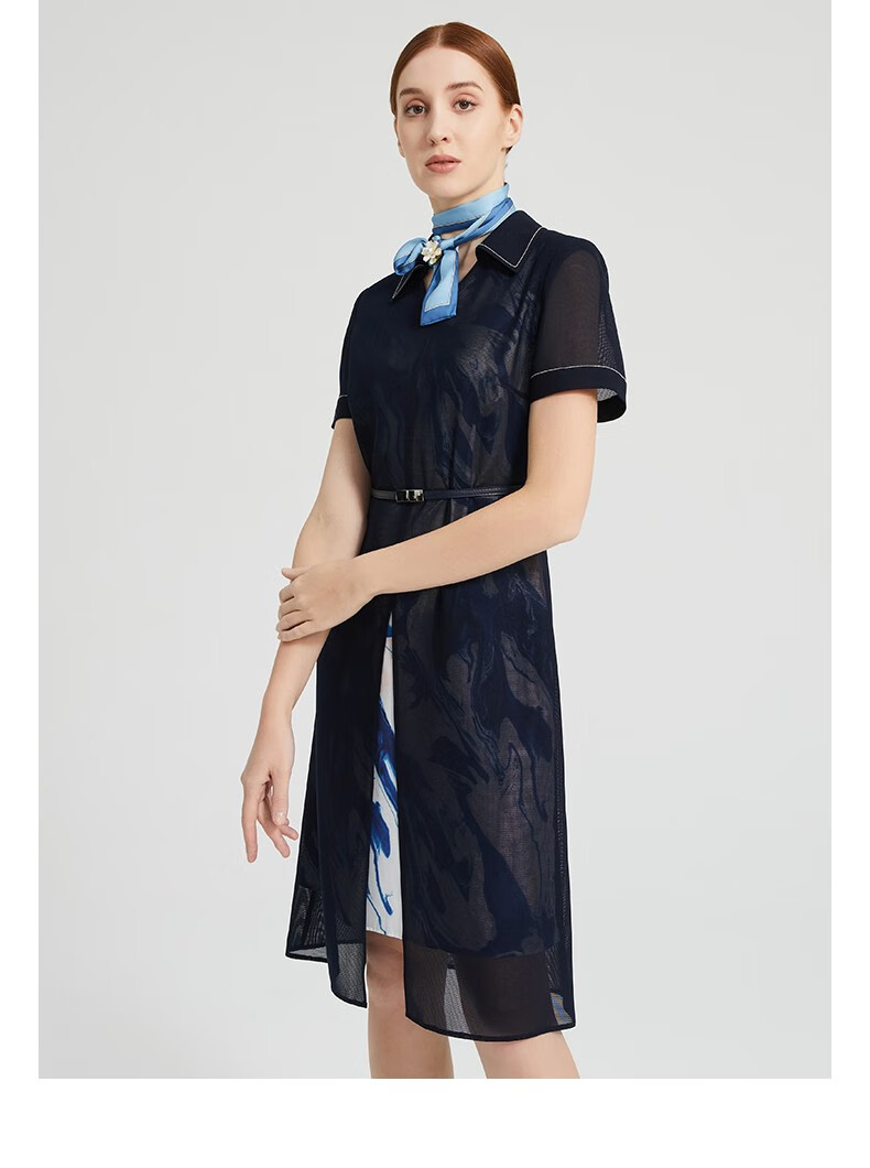 皮尔卡丹女装简约时尚拼接印花通勤收腰假两件连衣裙P2215D2012N3
