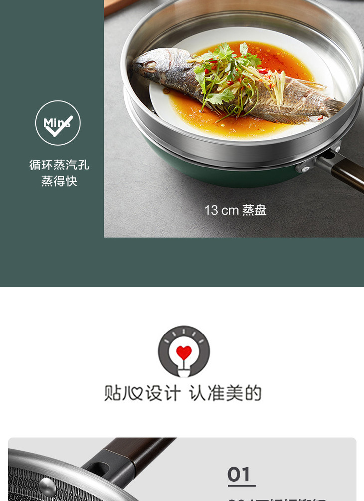 美的(Midea) (509658)炒锅煎锅 不锈钢蜂窝少油烟平底炒菜锅无惧钢铲 电磁炉明火通用 MP-SCG3208