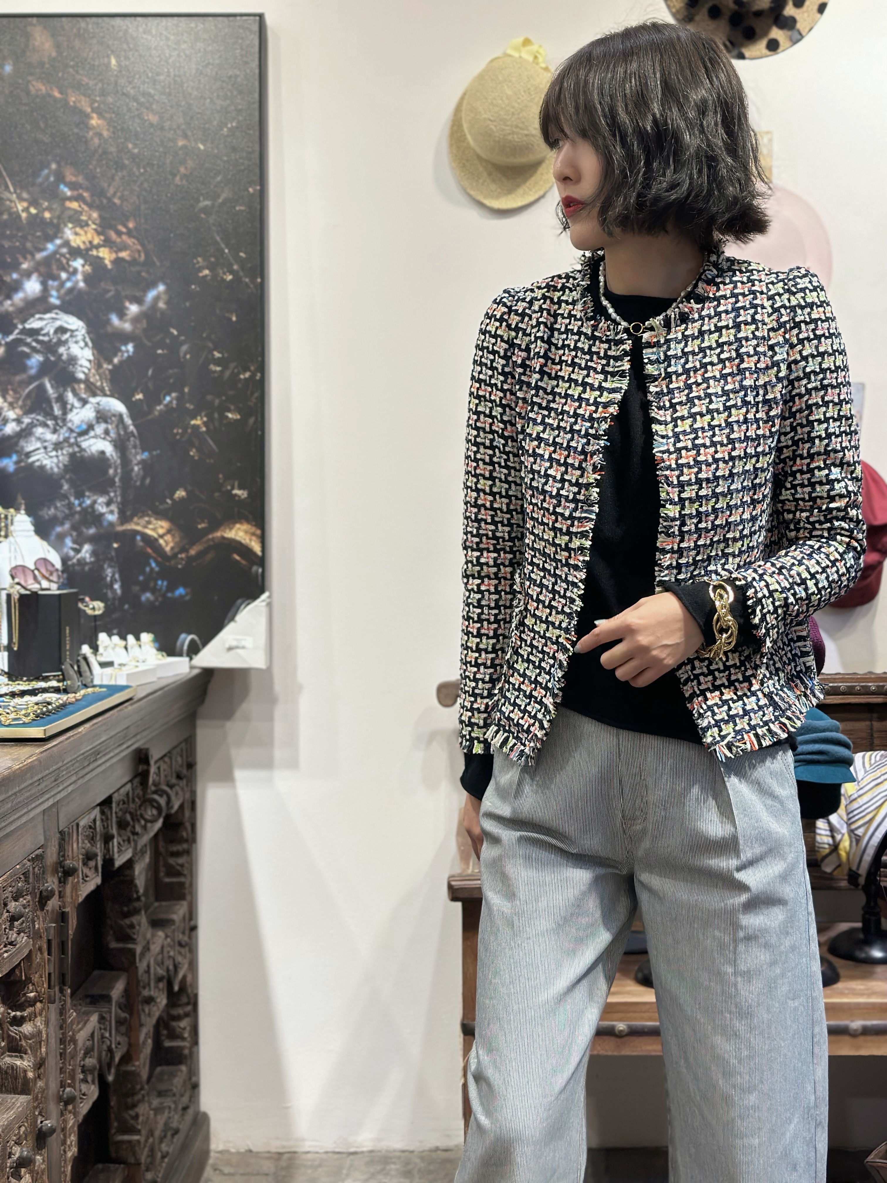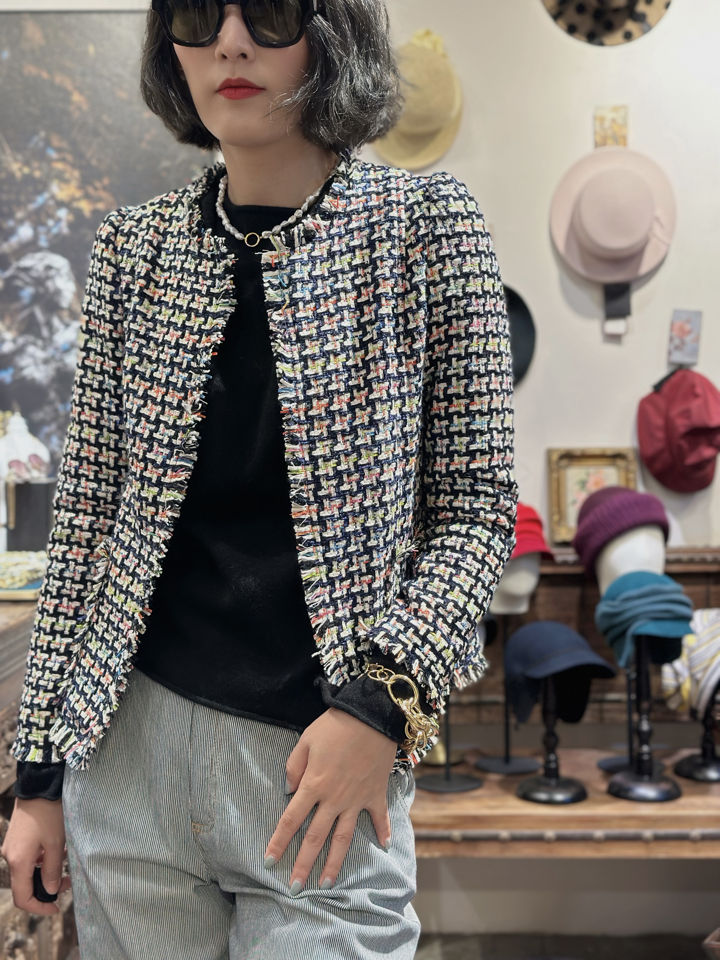 TYNVIE 插袋散口边缘花呢外套