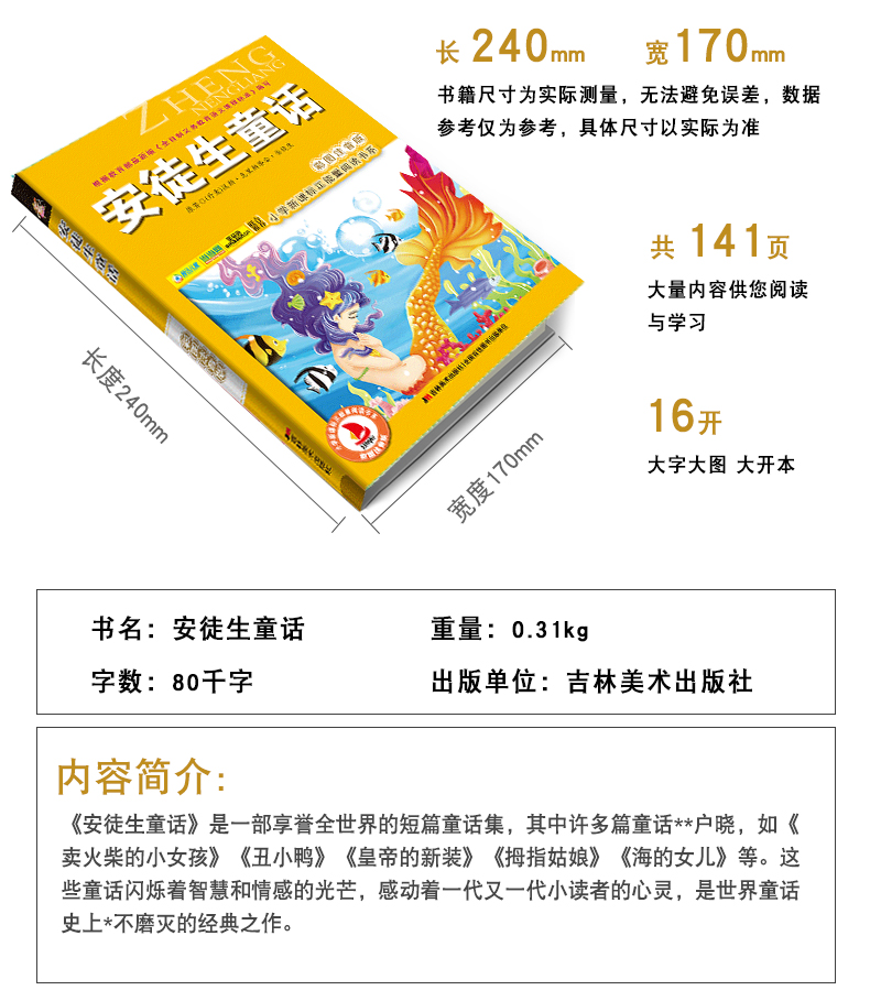 安徒生童话快乐读书吧注音版6-7-8-9岁儿童课外书小学生一二年级三年级课外读物书籍班主任推荐正版小学新课程正能量阅读书系