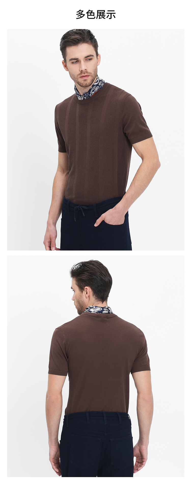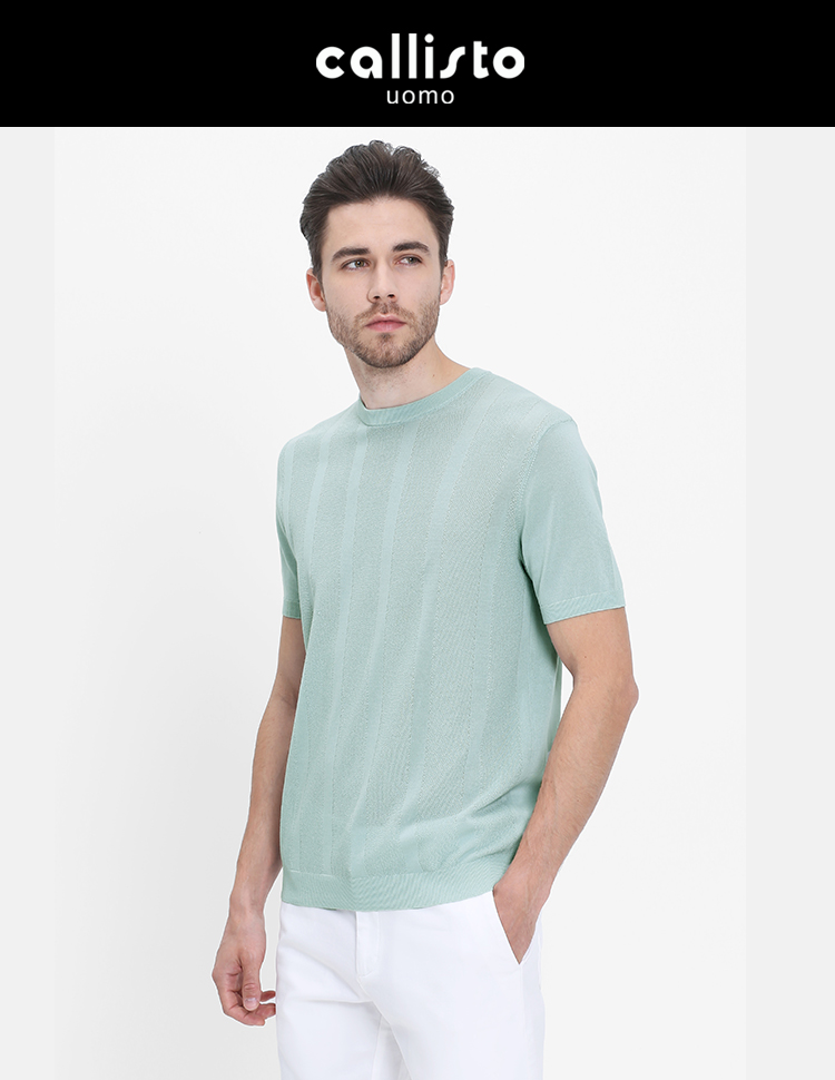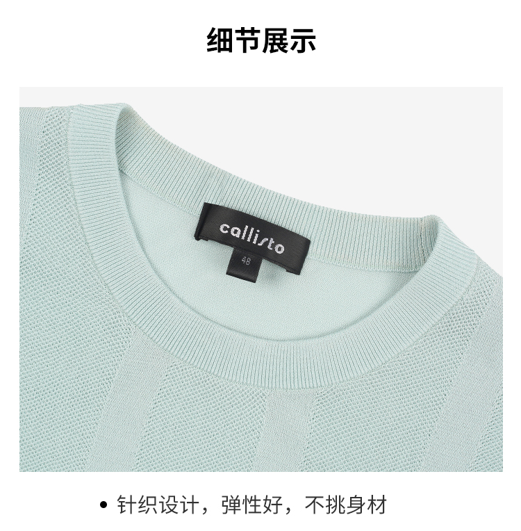 callisto咖啡醋酸棉提花圆领T恤 SRTSS070C