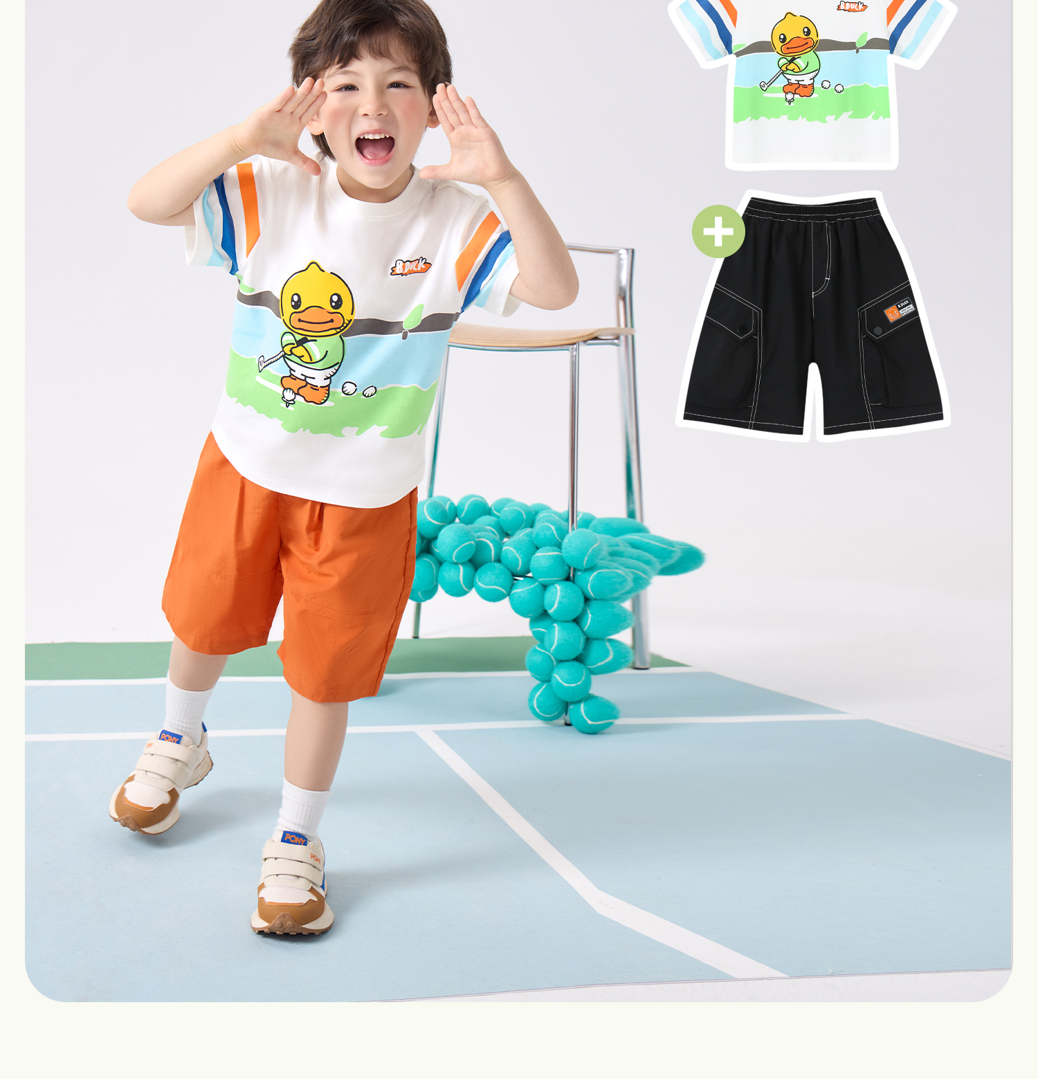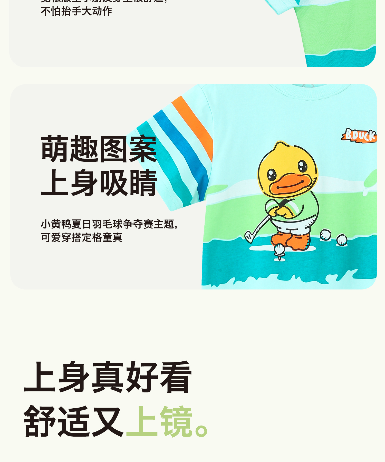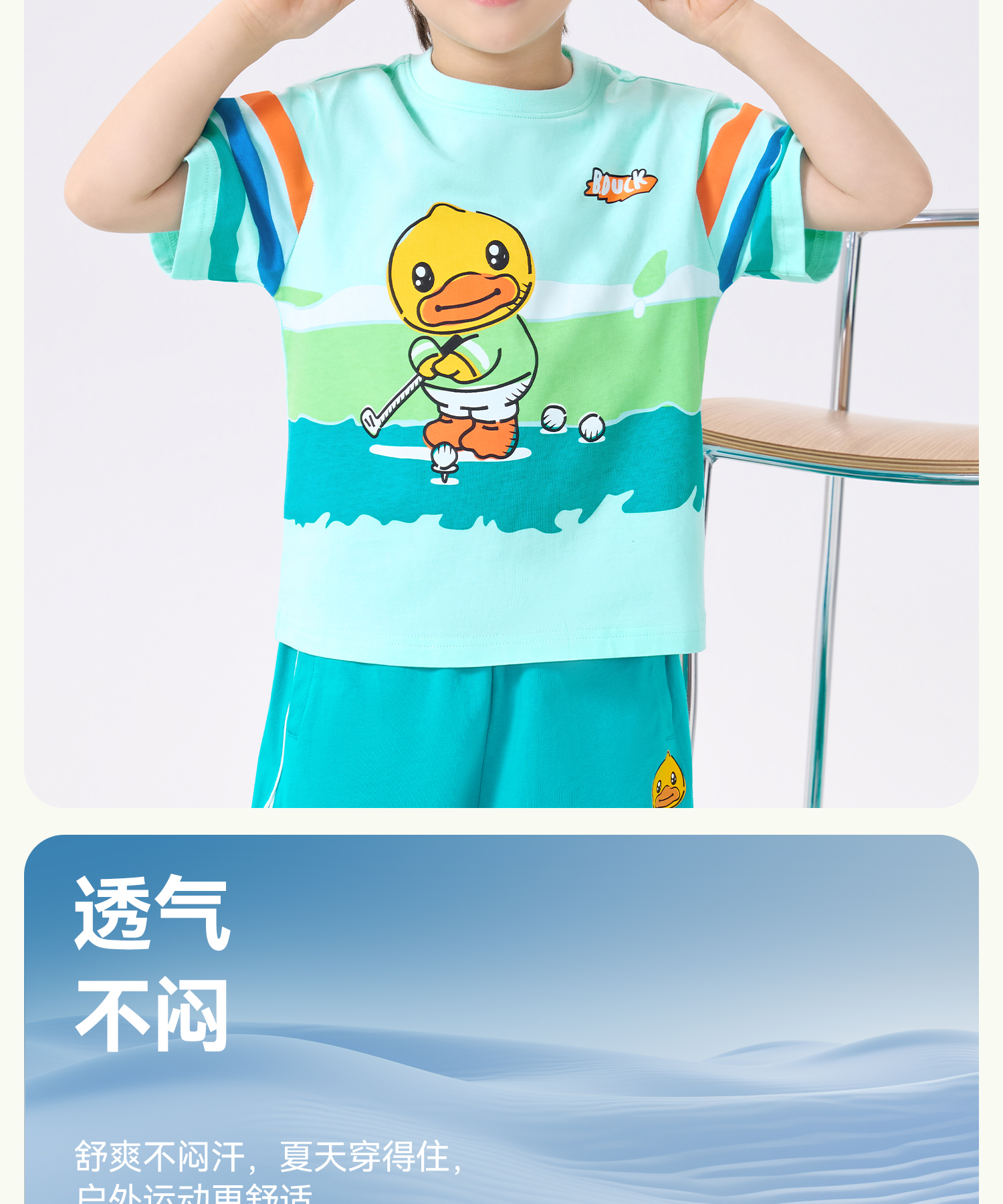 bduck小黄鸭童装夏季男童短袖T恤夏装纯棉儿童半袖中小童上衣105-150 BF2601053