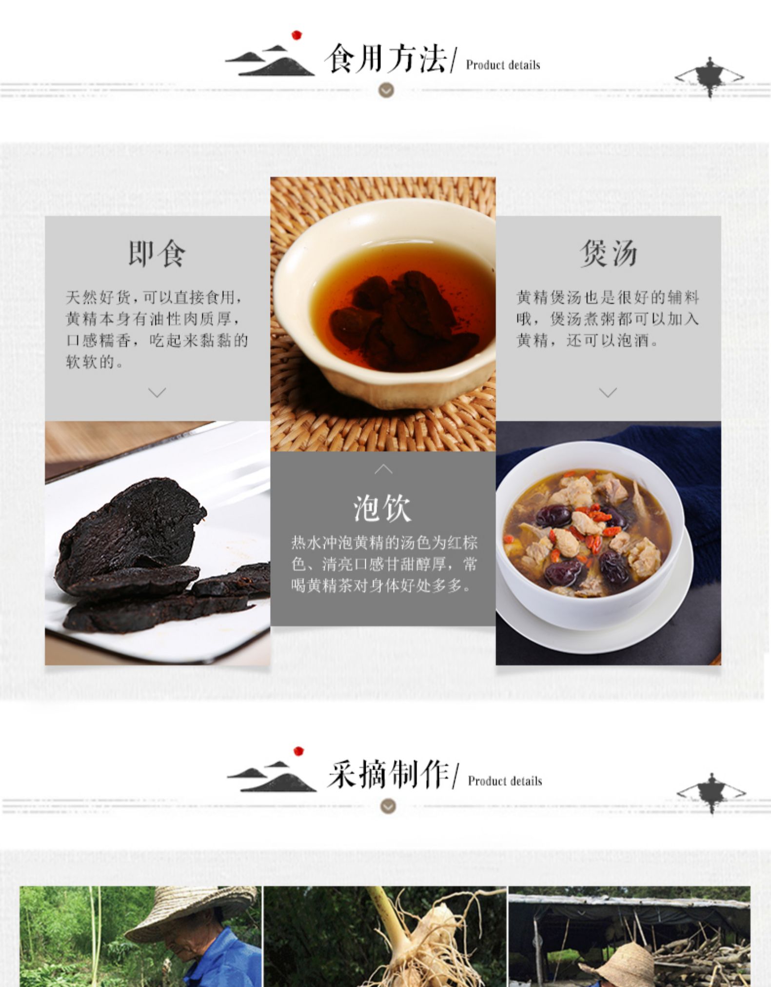 祥悦林黄精果即食中药材九晒九蒸九制糯头黄精干茶九华山黄精250g