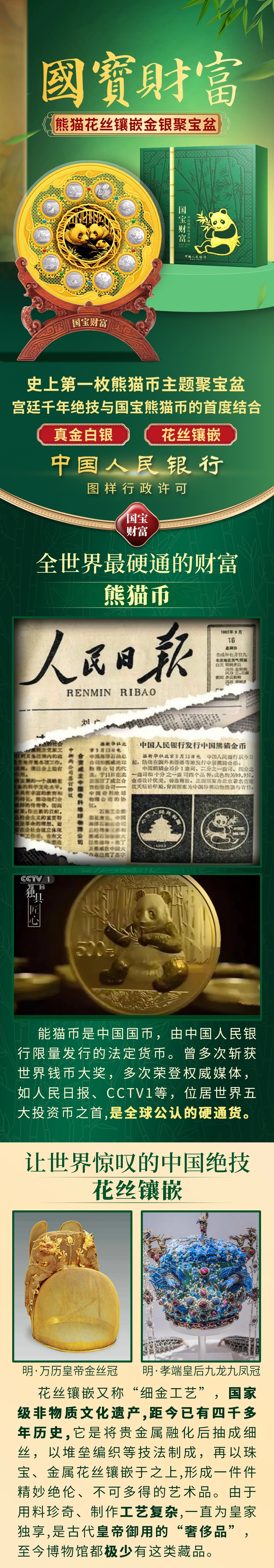 国宝财富——熊猫花丝镶嵌金银聚宝盆