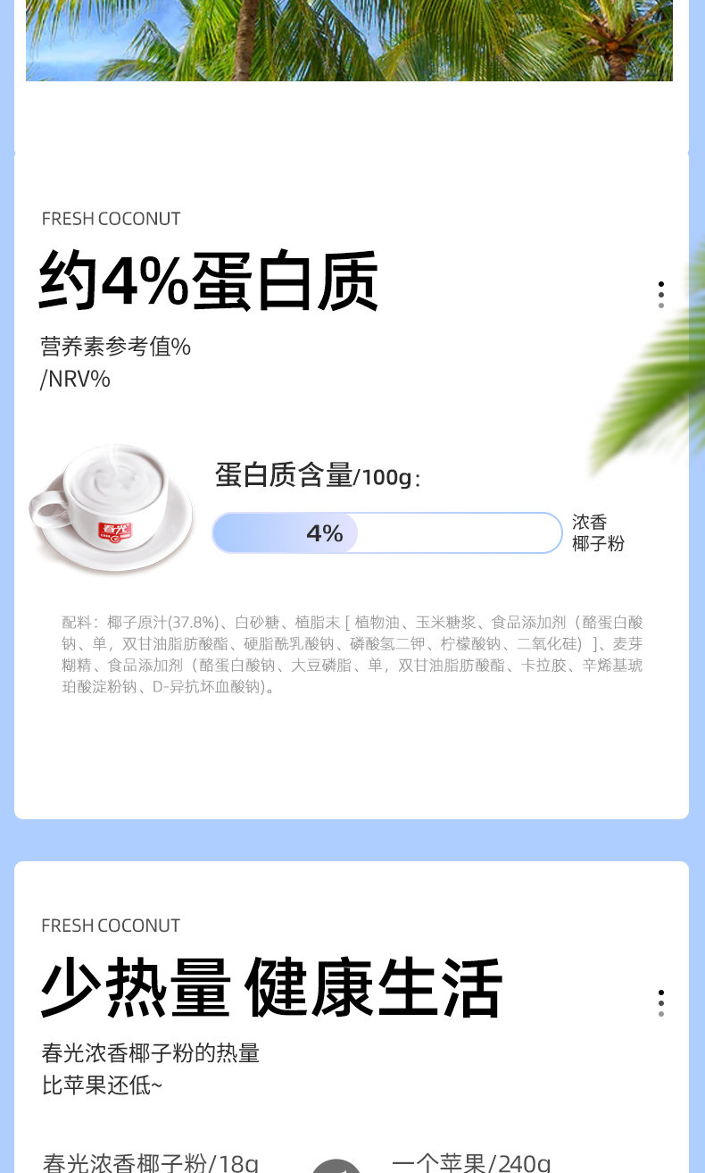 春光食品纯椰子粉400g*2 罐装 0添加白砂糖早餐冲饮【店长推荐】