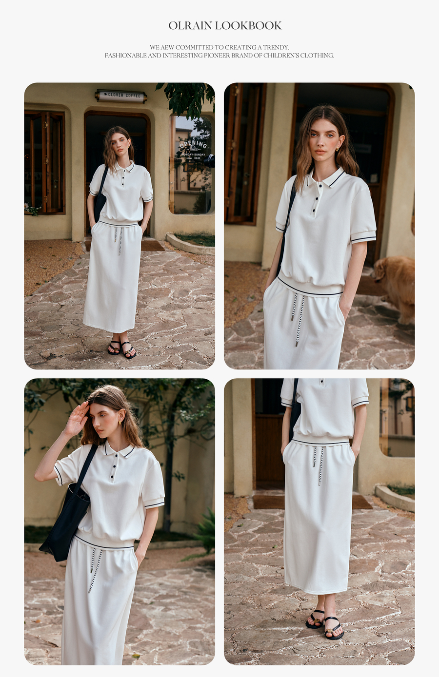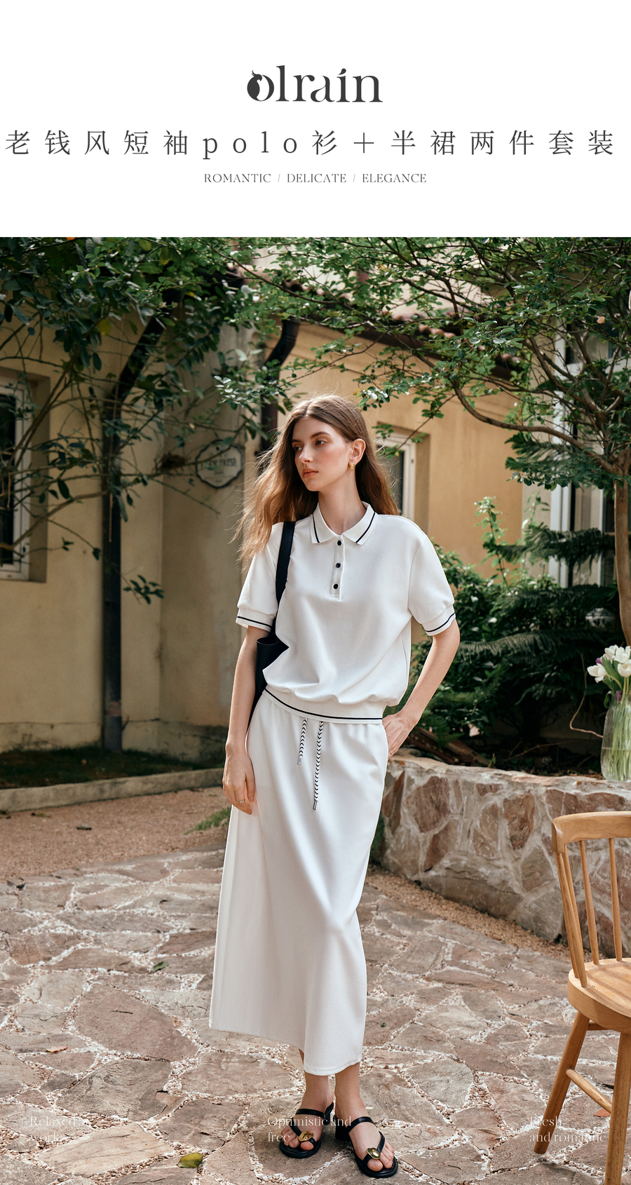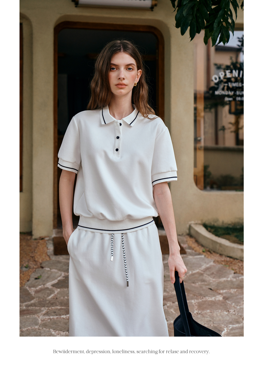 OLrain欧芮儿2025新款女夏季老钱风白色短袖polo衫半裙两件套装