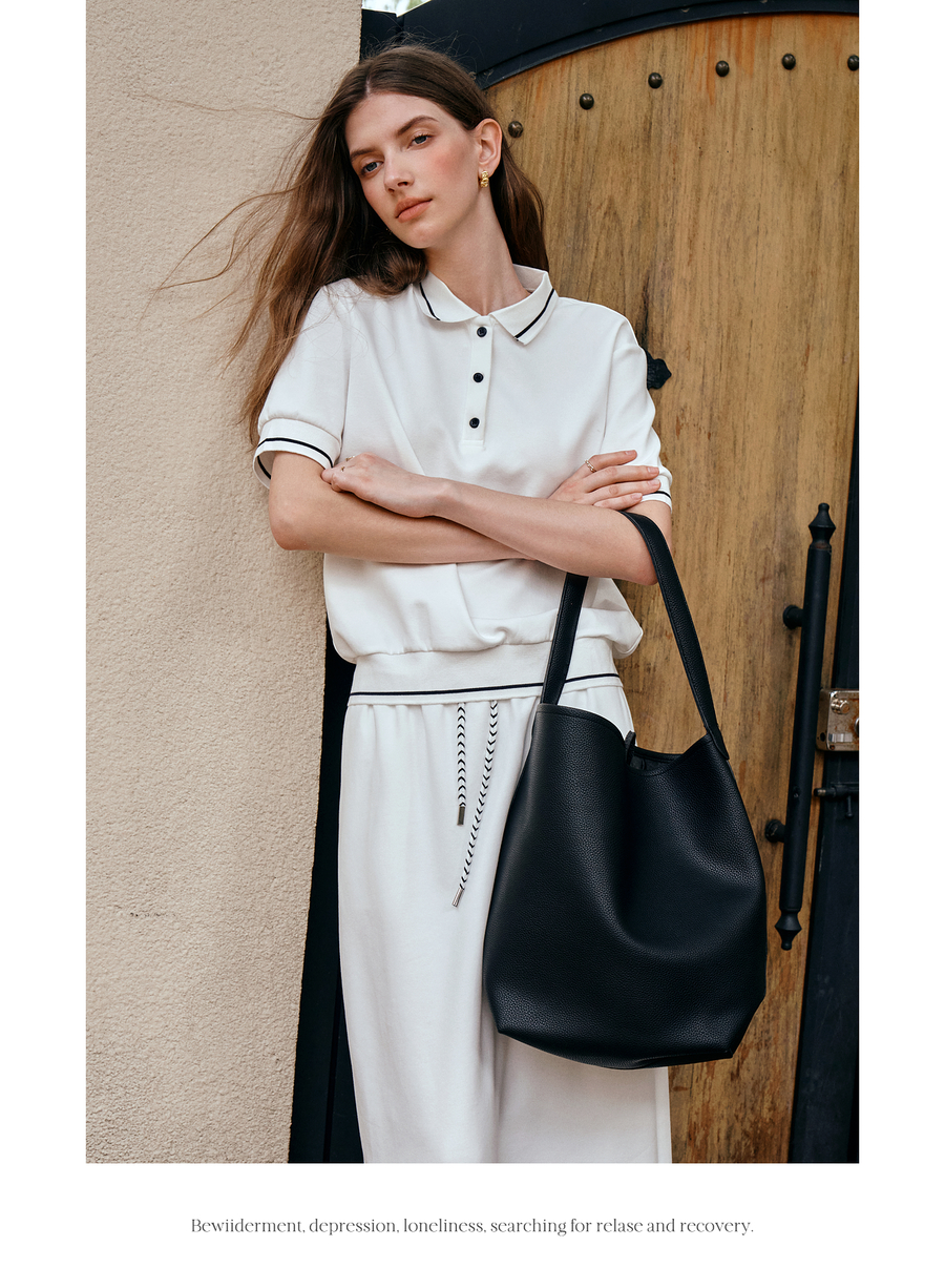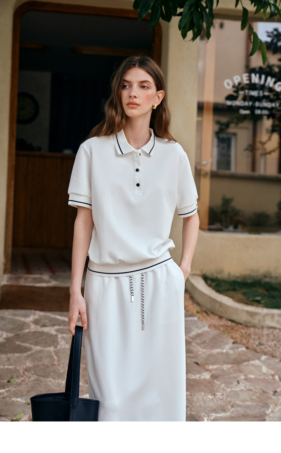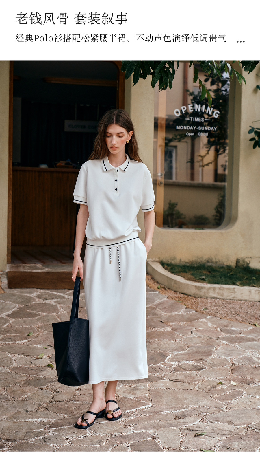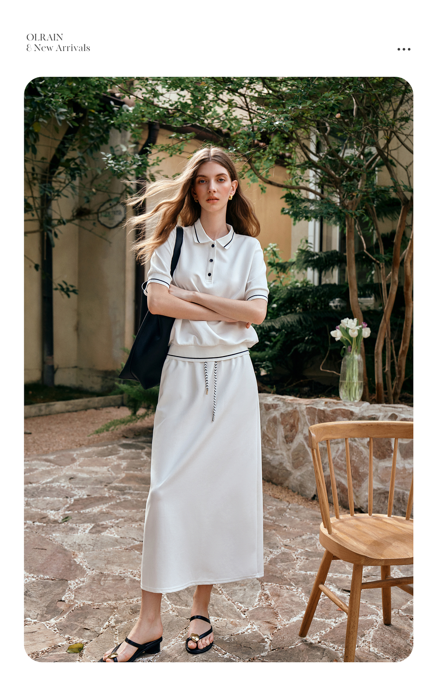 OLrain欧芮儿2025新款女夏季老钱风白色短袖polo衫半裙两件套装
