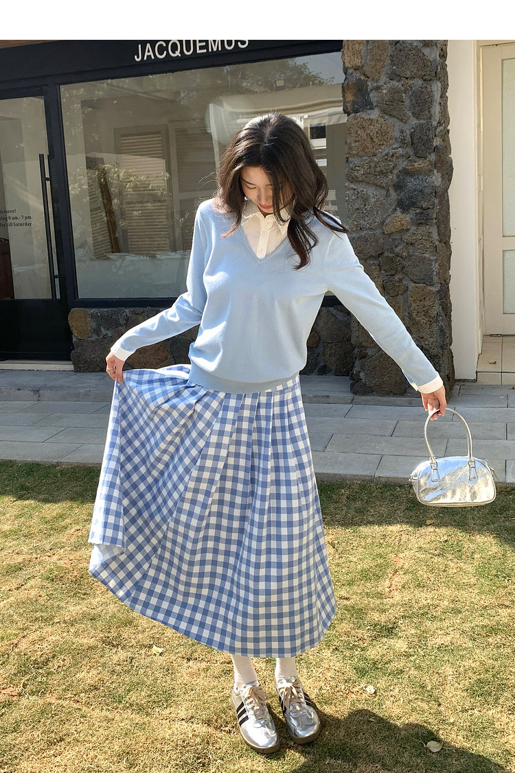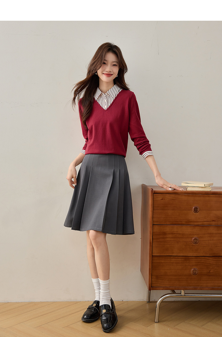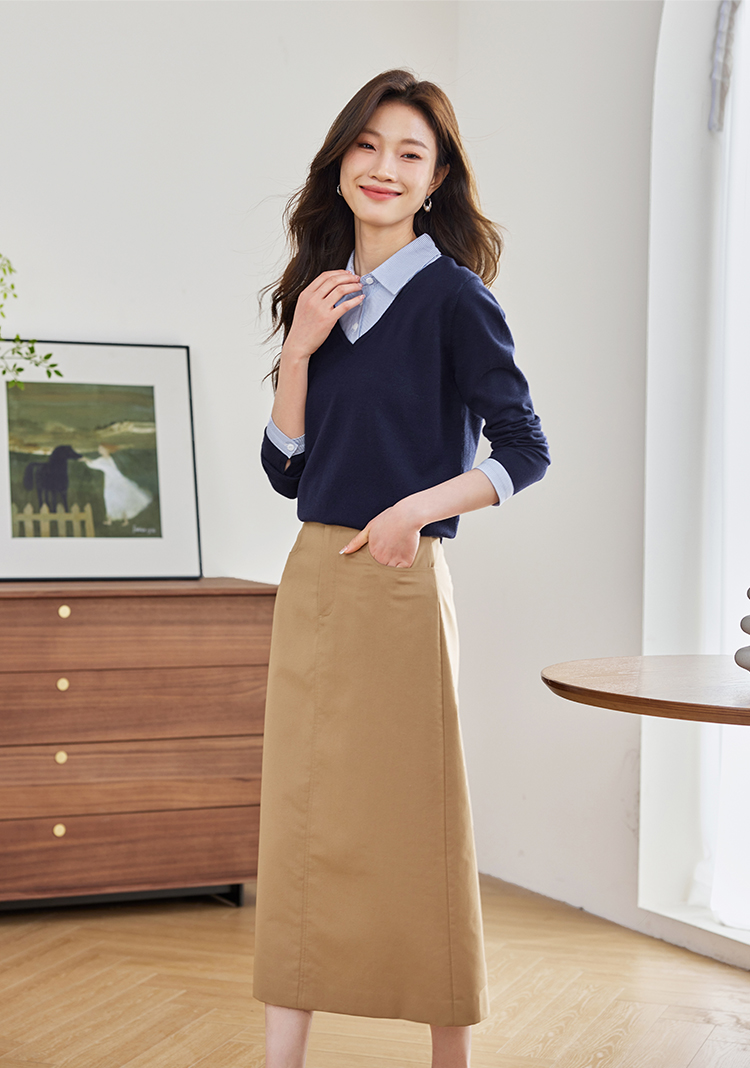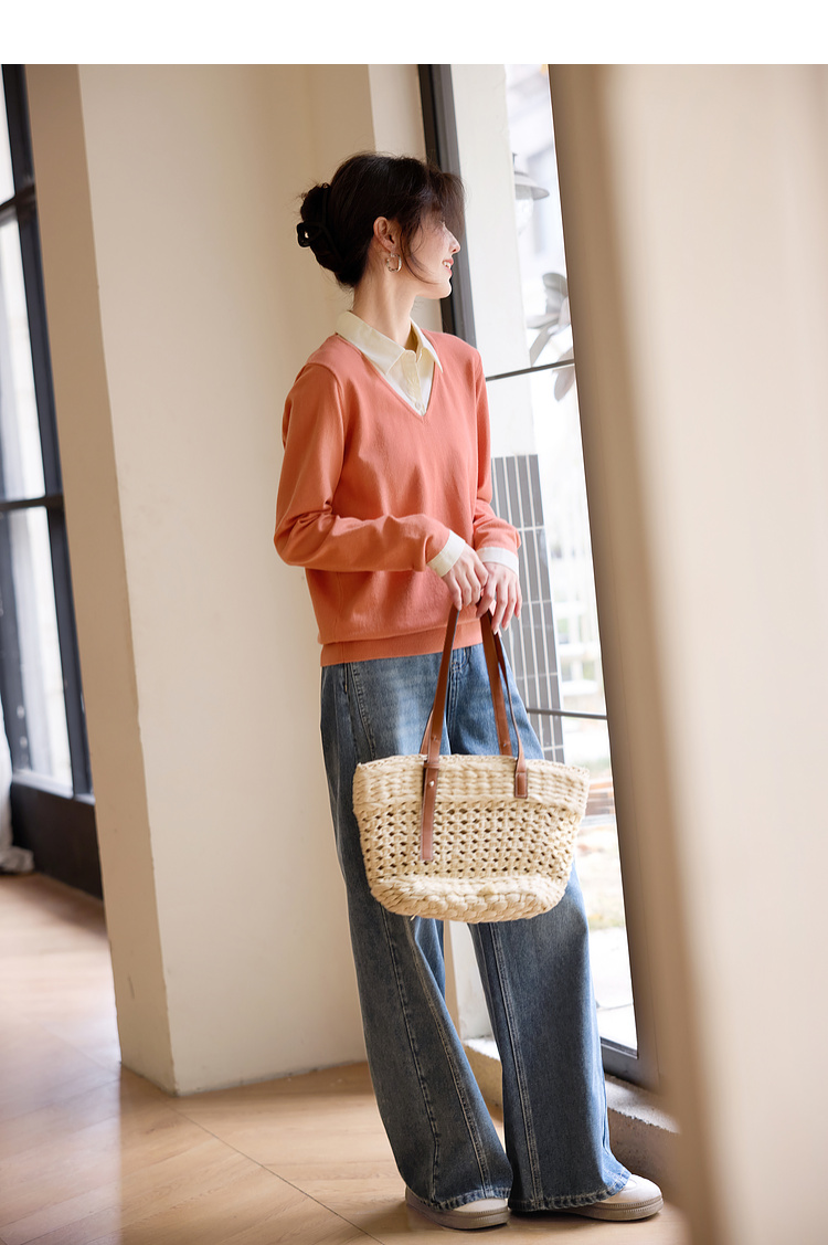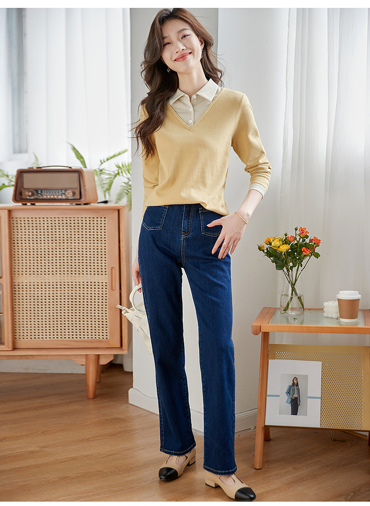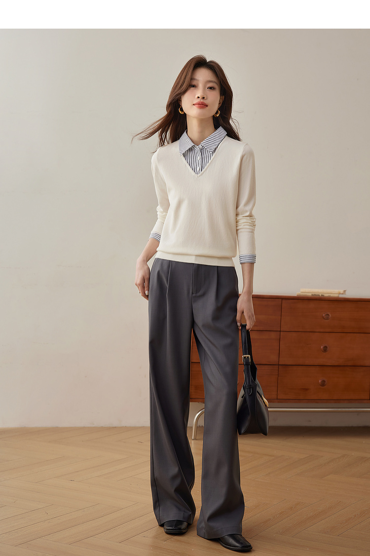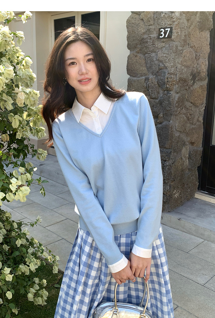 【周四狂欢价】熙世界通勤衬衫领拼接假两件针织衫秋季新款内搭长袖打底衫上衣