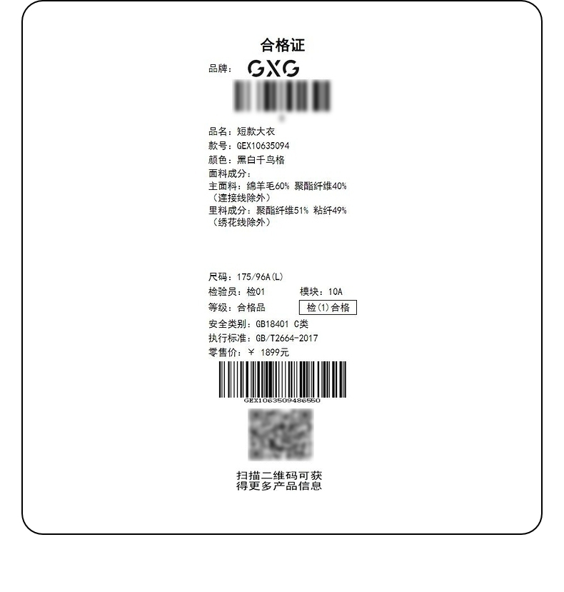 GXG男装 黑白千鸟格短款大衣 冬季热卖气质大衣GEX10635094