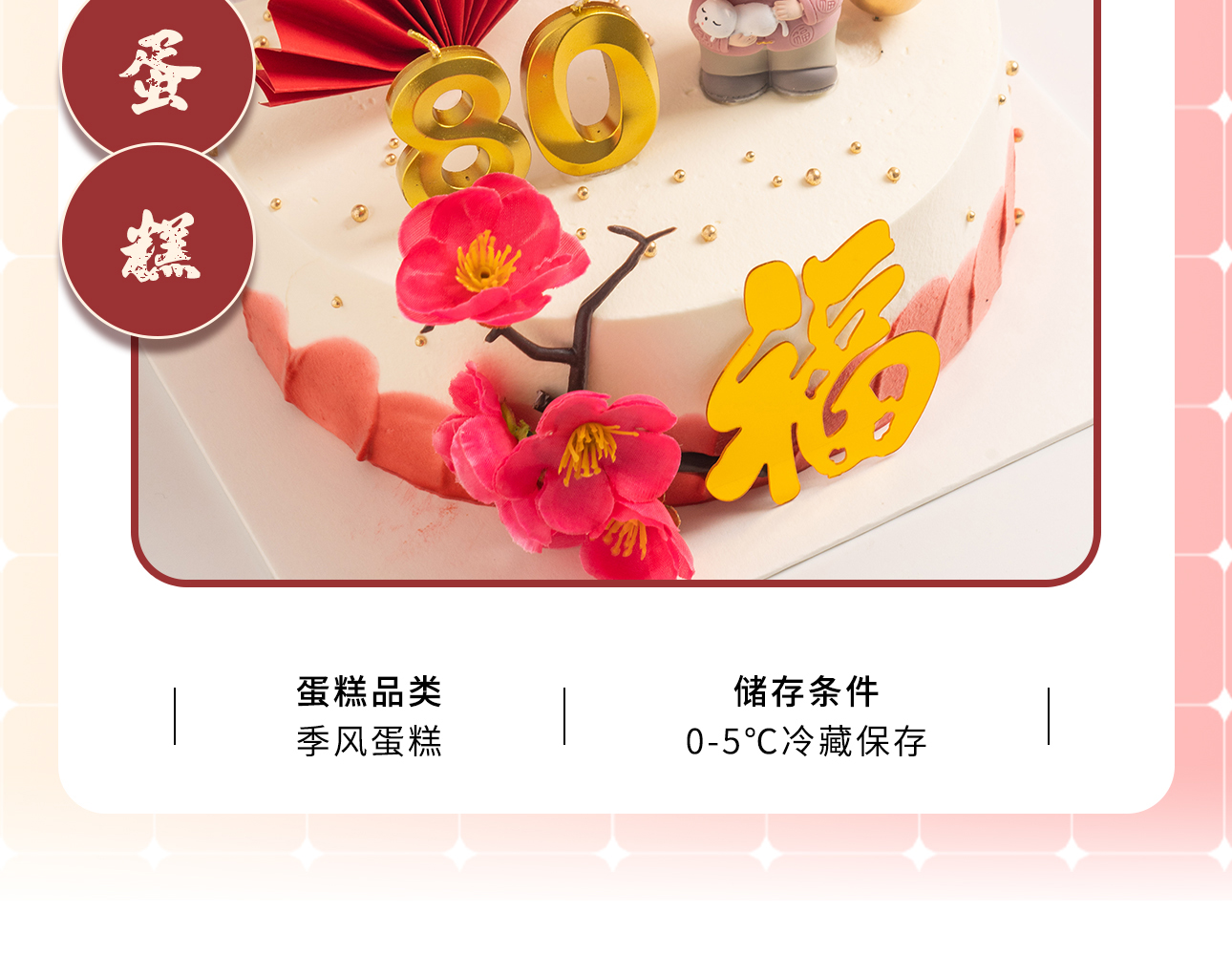 【祝寿蛋糕】老人过寿蛋糕 6寸8寸(纯动物奶油 新鲜水果夹心 提前1天预定)