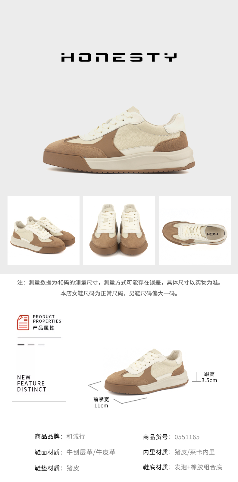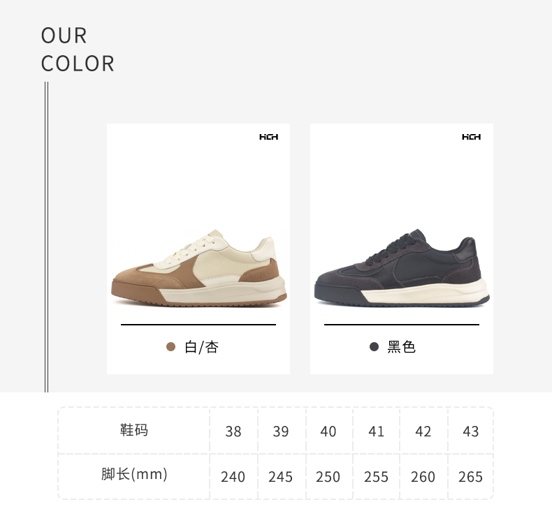 和诚行 2024秋冬新款真皮百搭厚底德训鞋男士时尚休闲板鞋0551161