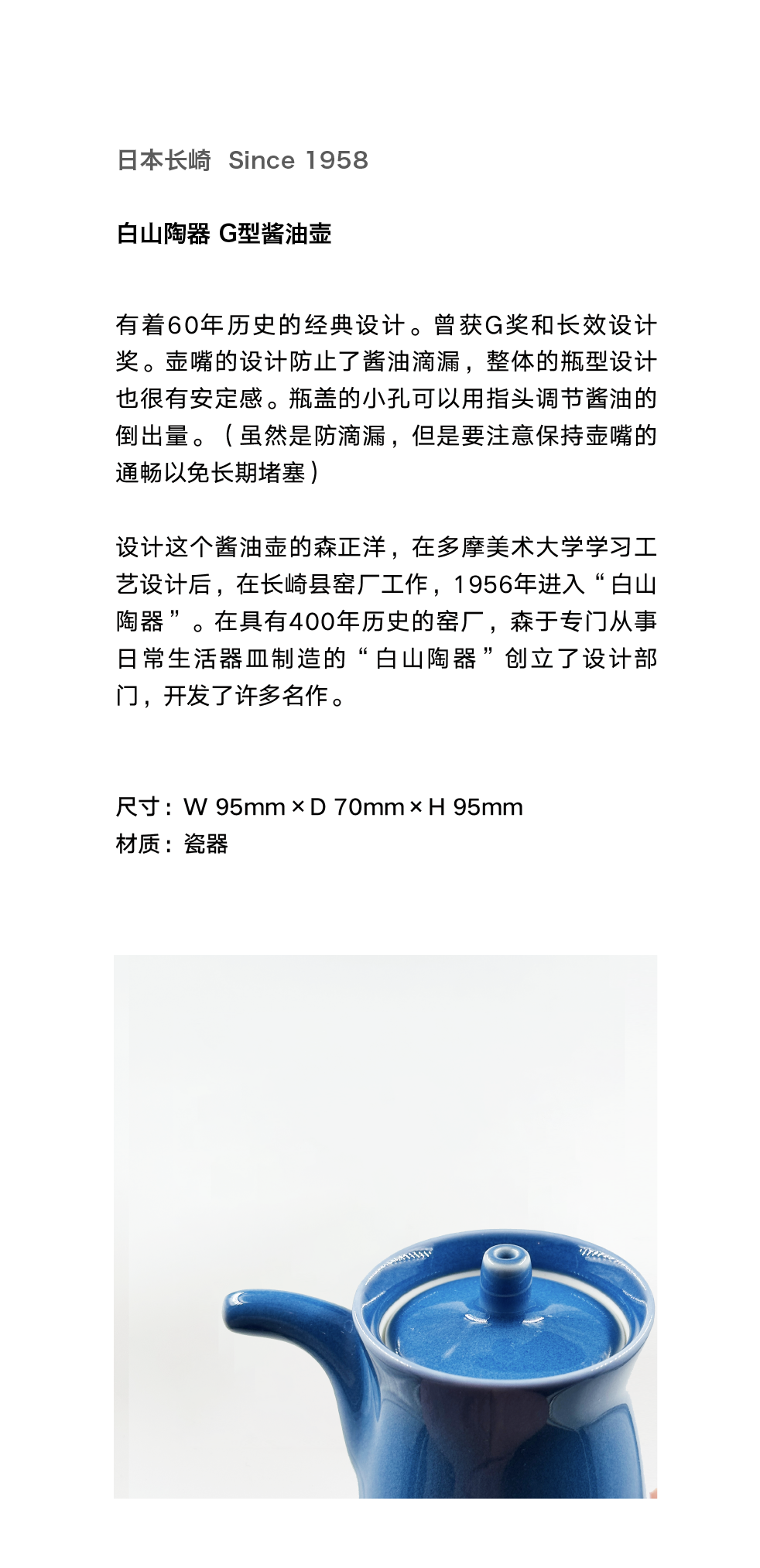 白山陶器 G型酱油壶 商品图0