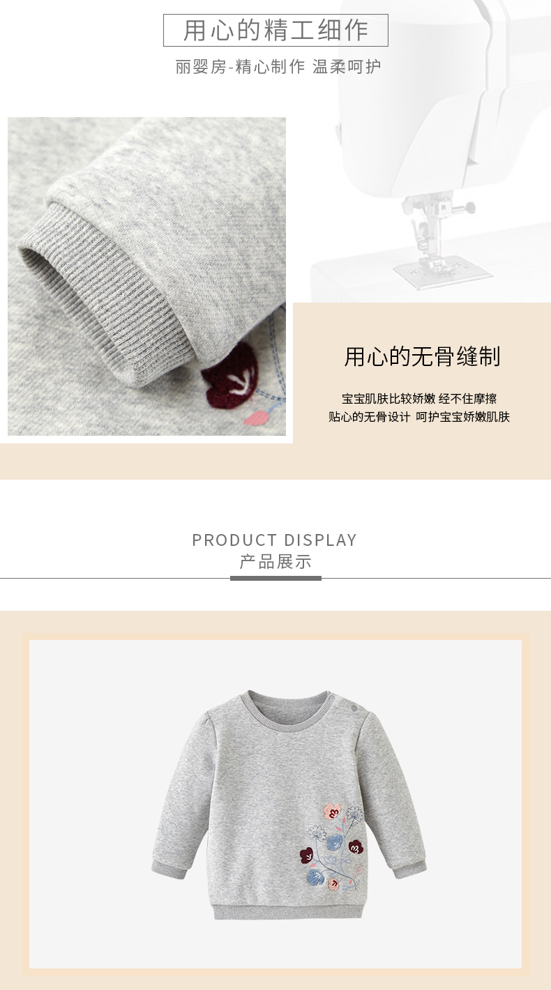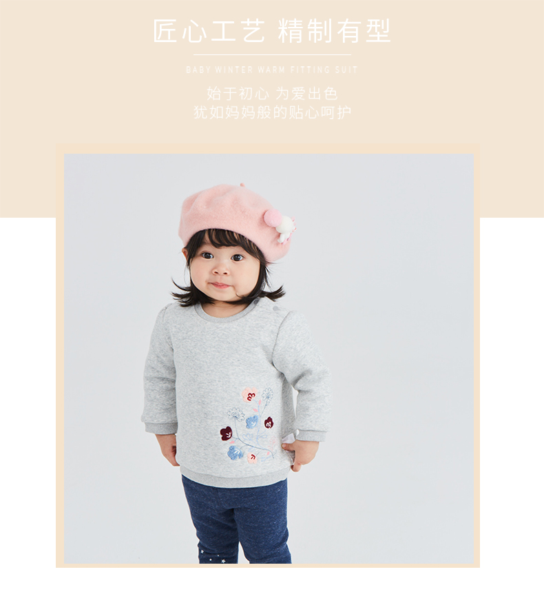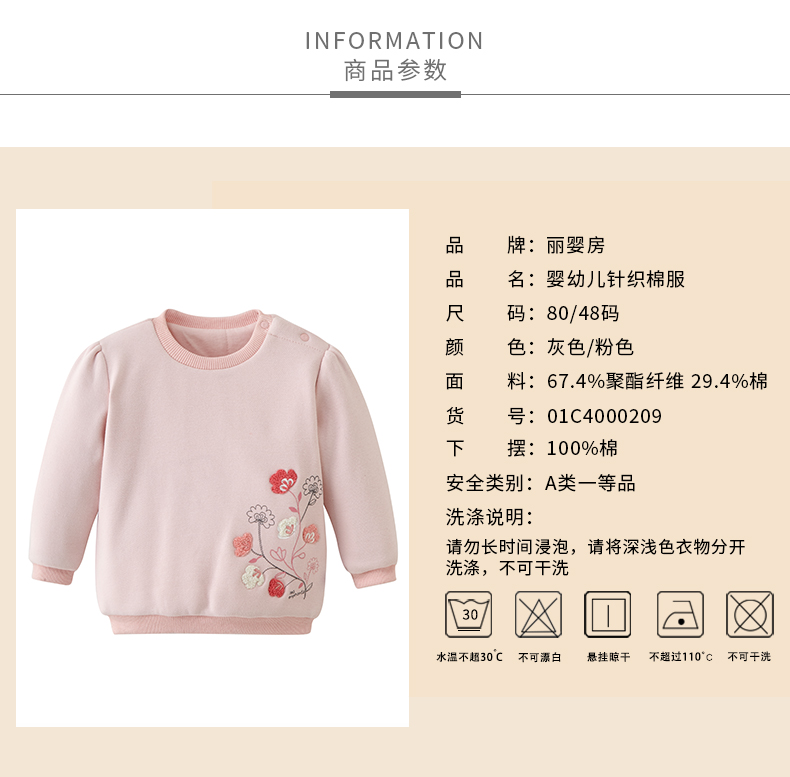 丽婴房童衣冬装女童加厚夹棉针织绣花套头衫打底衣01C40002092