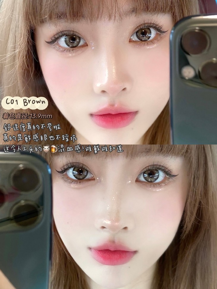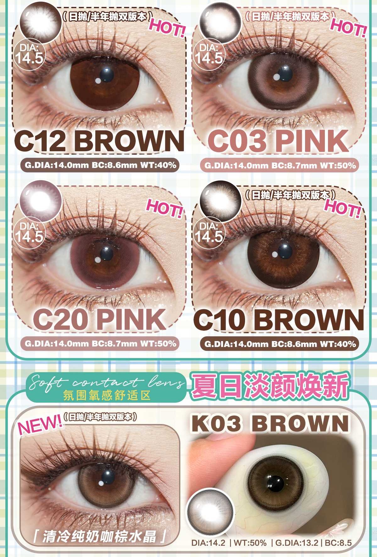【小红书推荐款】yeelens,C03-pink初恋粉棕,日抛/直径14.5/着色14.0,68/盒128/2盒228/4盒548/10盒,需佩戴工具请备注