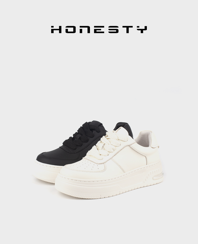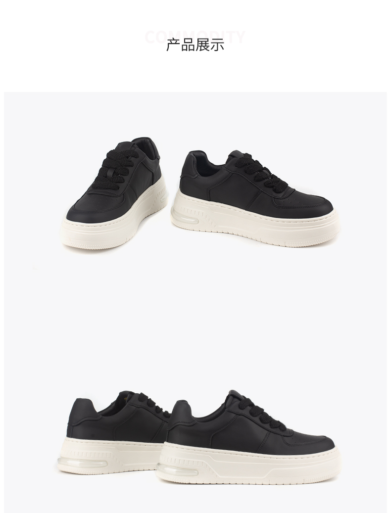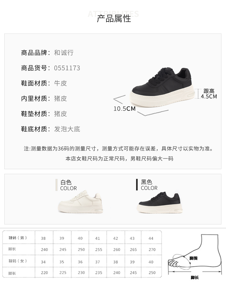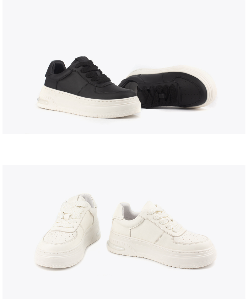 和诚行 2024秋冬新款百搭真皮时尚厚底休闲鞋女鞋厚底板鞋0551173