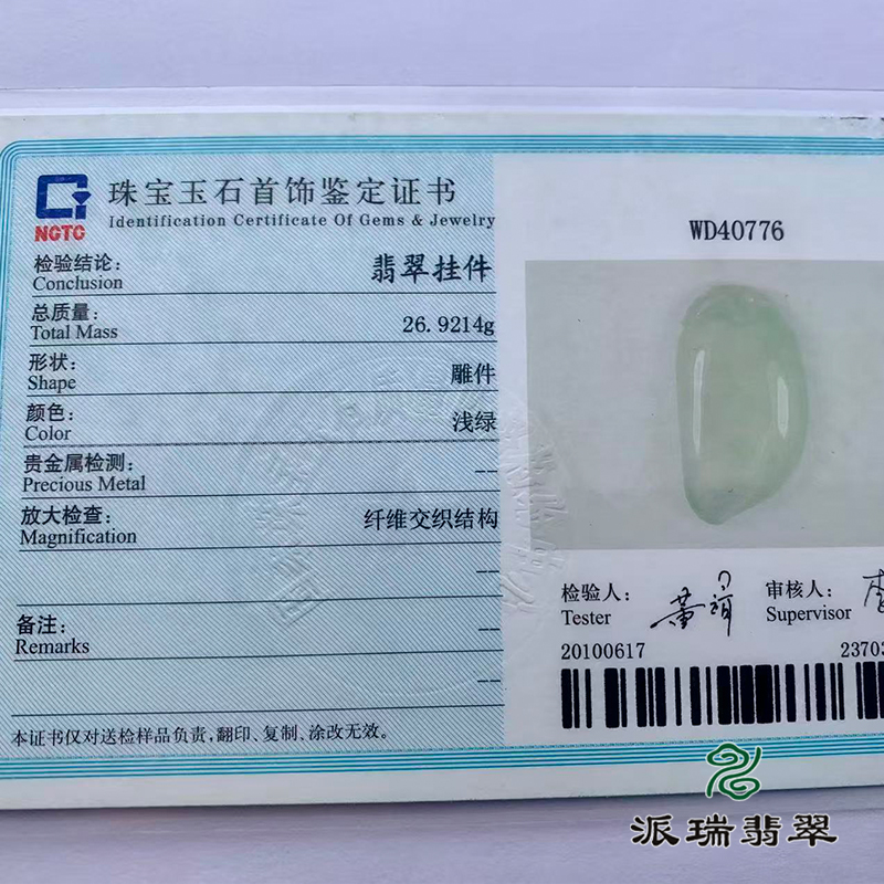 派瑞翡翠 翡翠挂件 冰种 无色