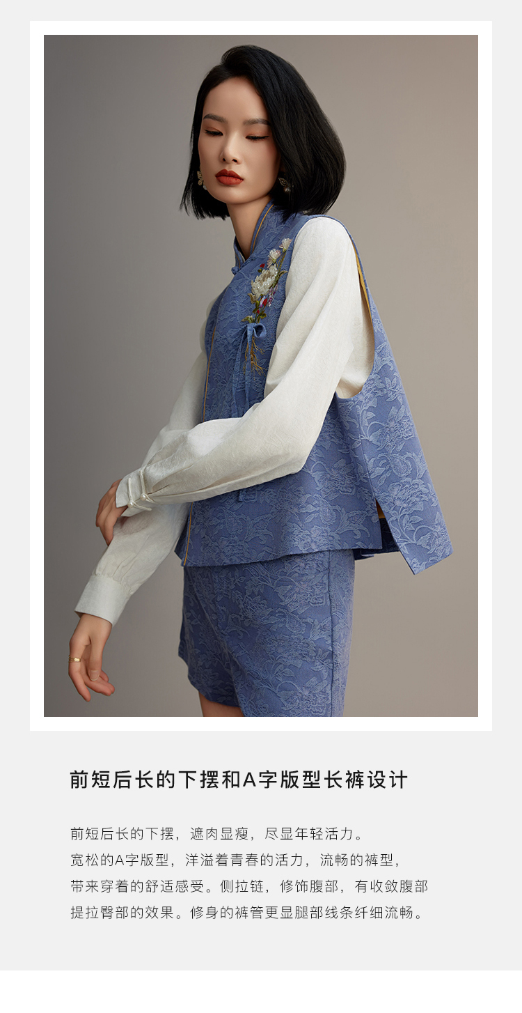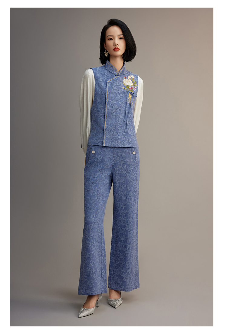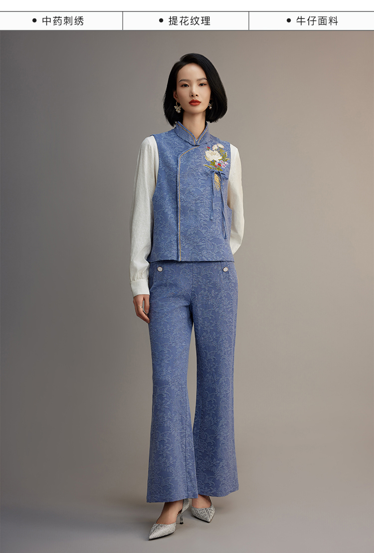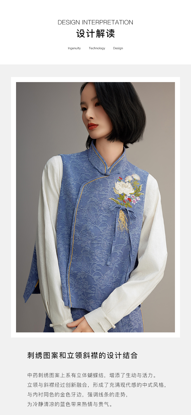 郭培成衣品牌【“药”爱自己】牛仔蓝印花新中式马甲套装