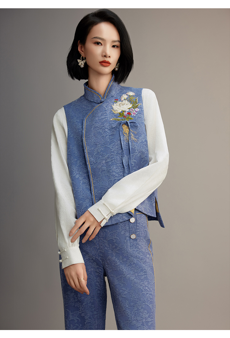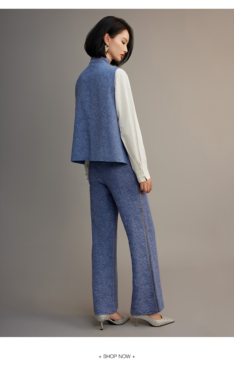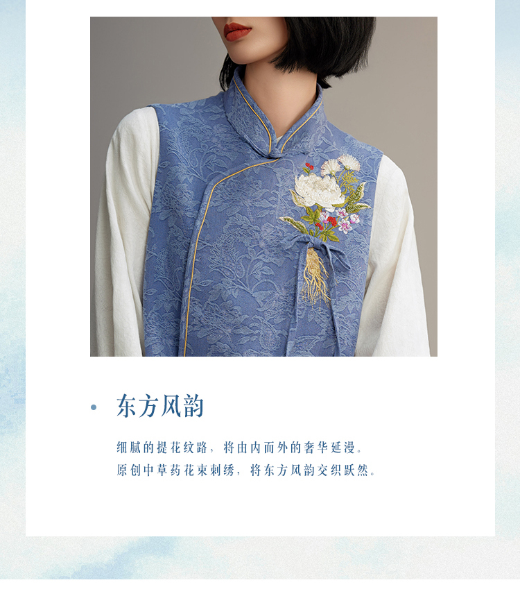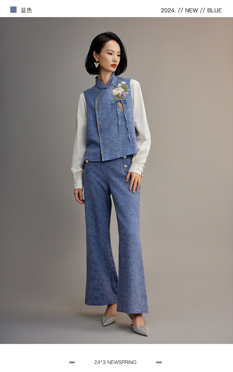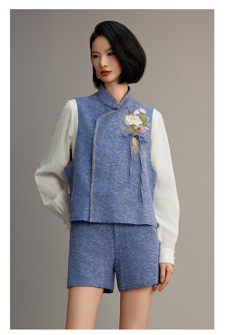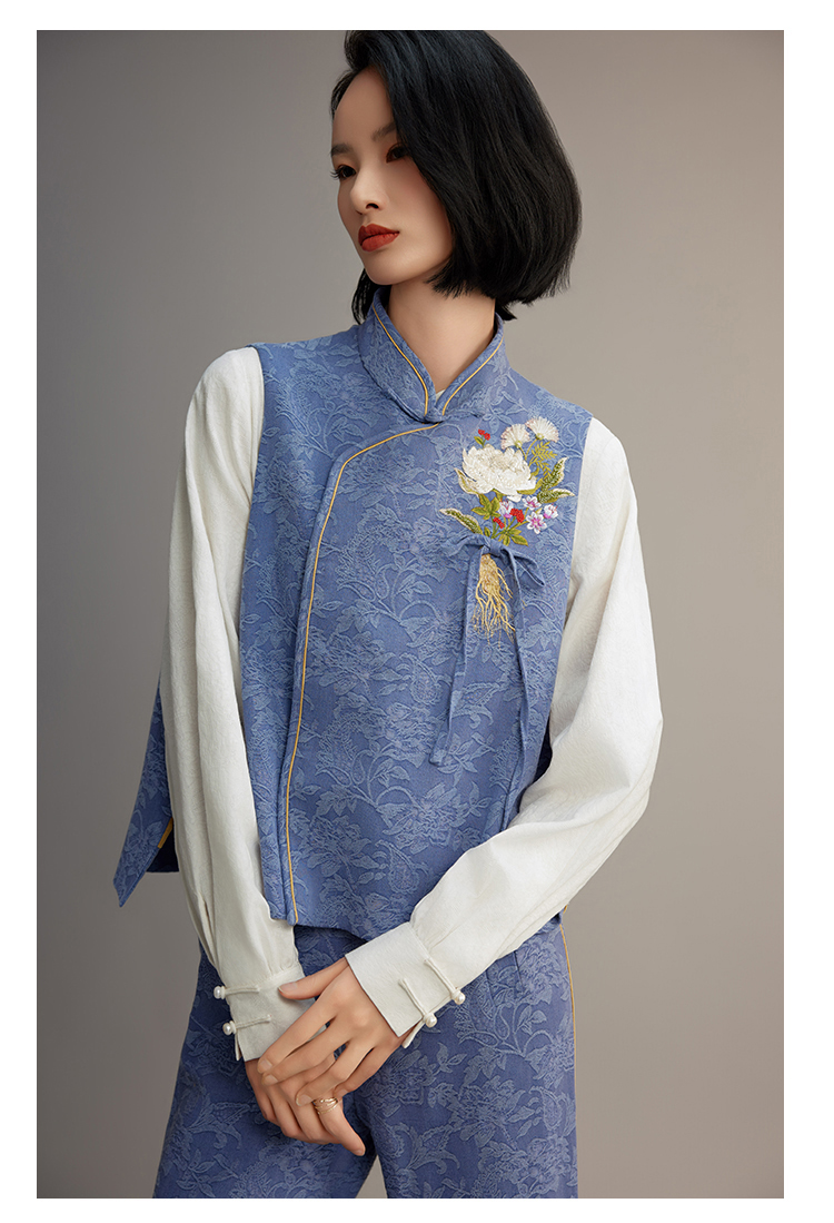 郭培成衣品牌【“药”爱自己】牛仔蓝印花新中式马甲套装