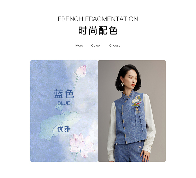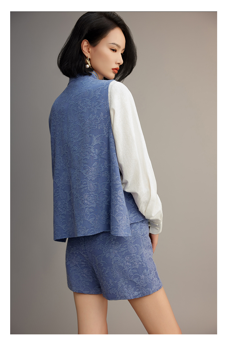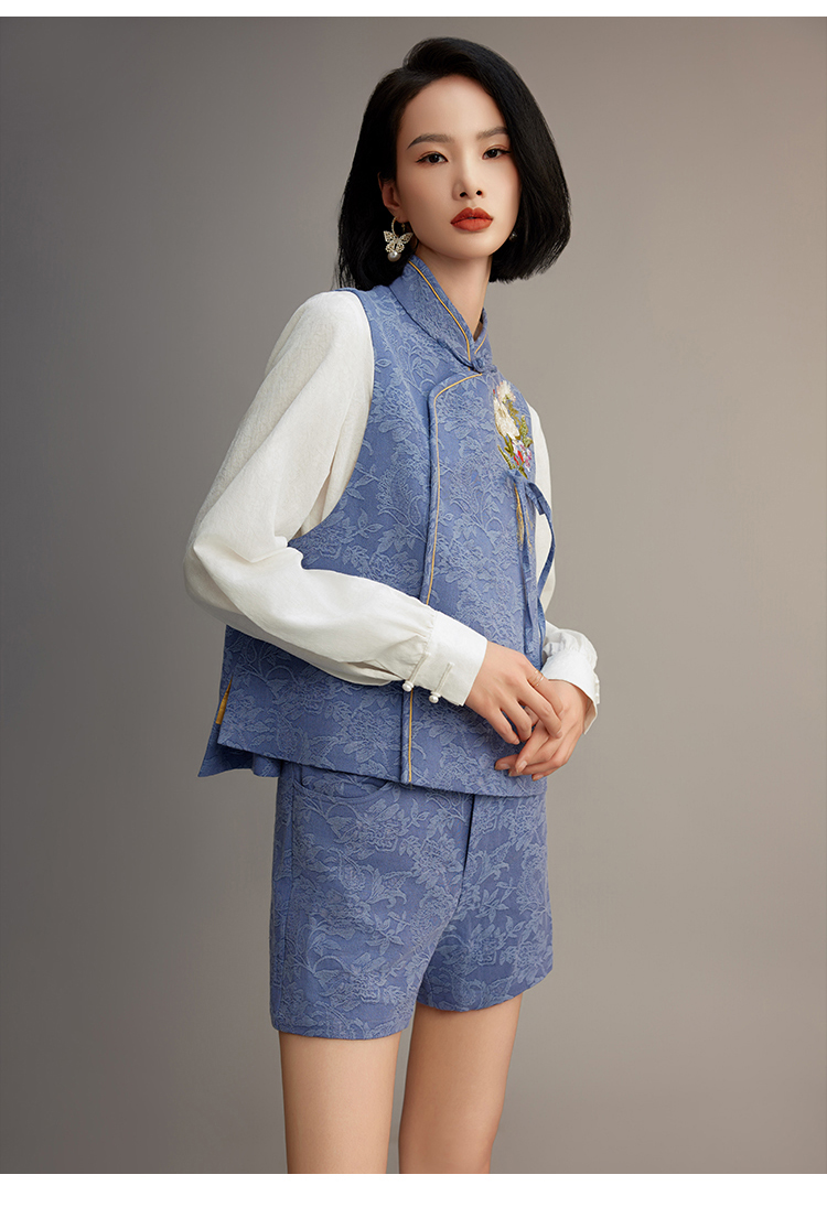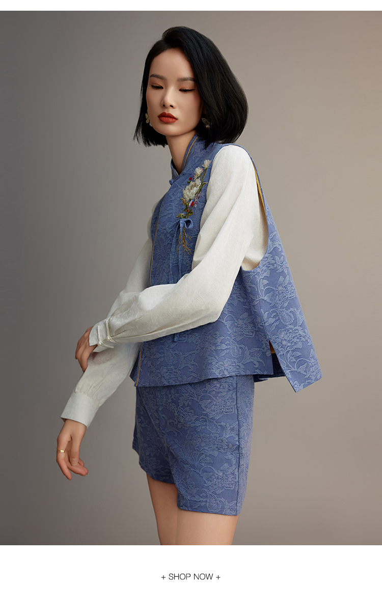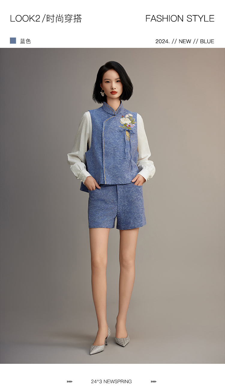 郭培成衣品牌【“药”爱自己】牛仔蓝印花新中式马甲套装