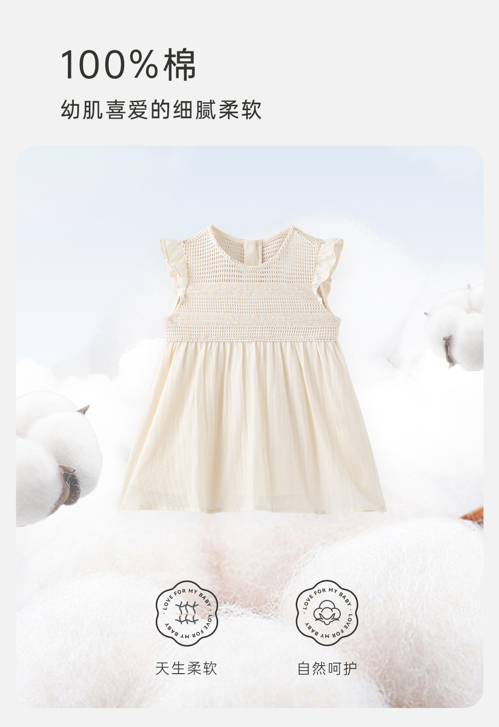 英氏短袖连体衣夏季透气女童可爱公主裙2024新款裙子YRLCJ2Q358A