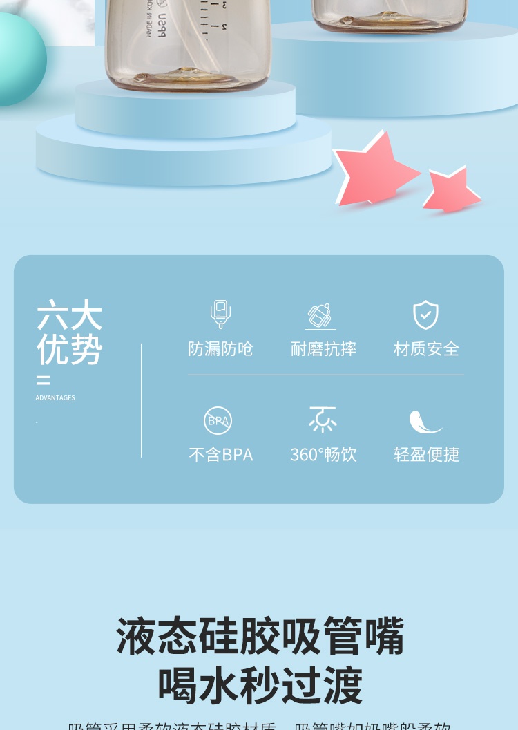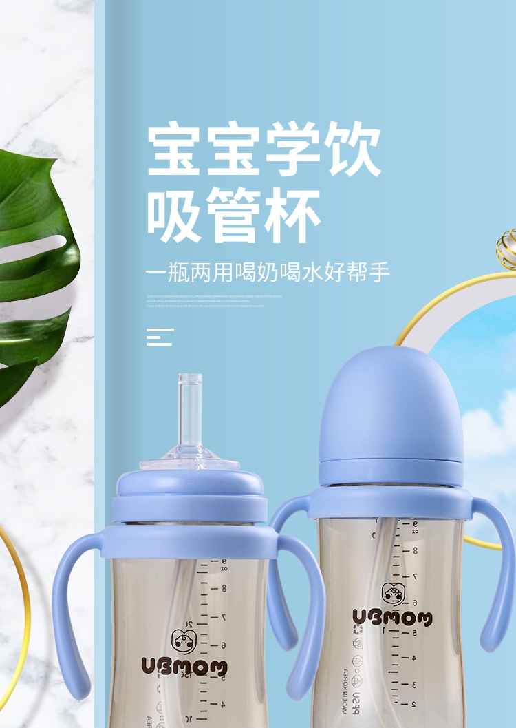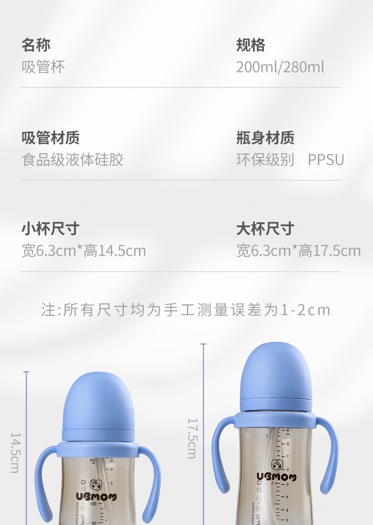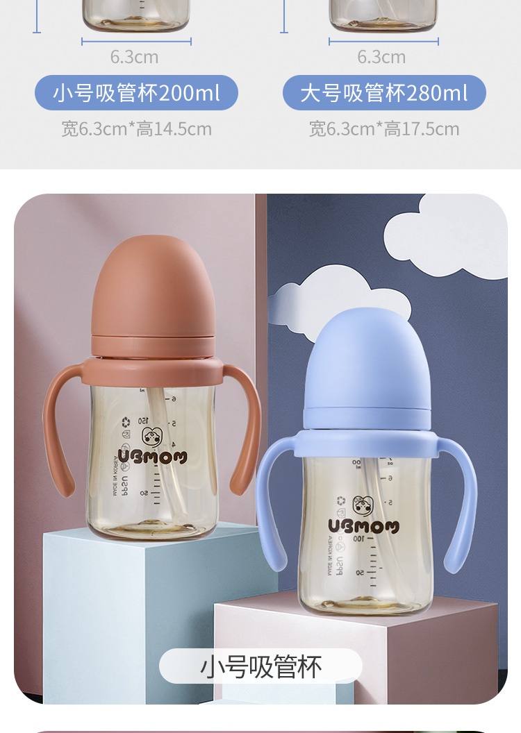 宝宝ubmom防漏小容量水杯男女童吸管杯硅胶奶瓶12岁以上ppsu材质
