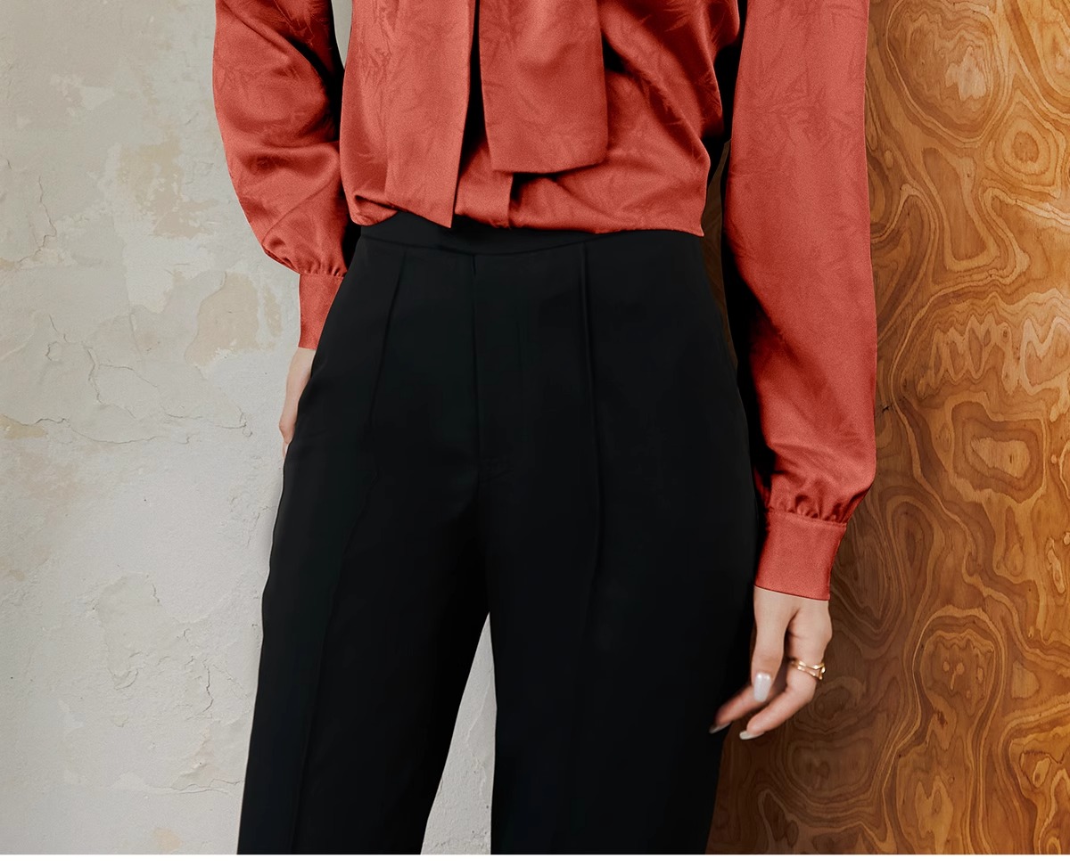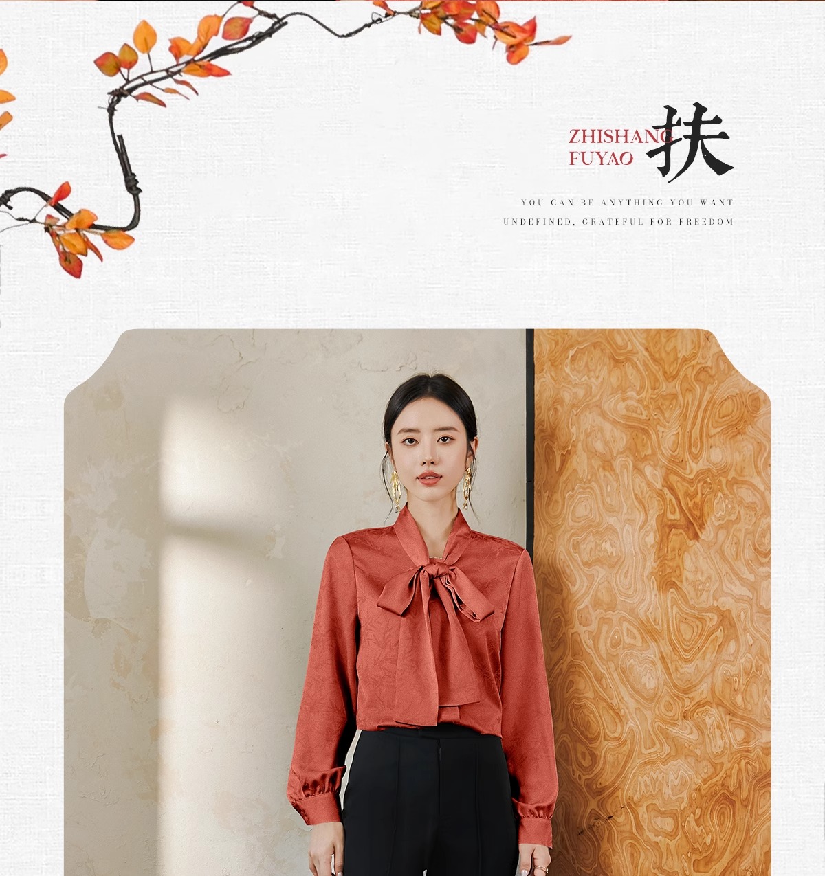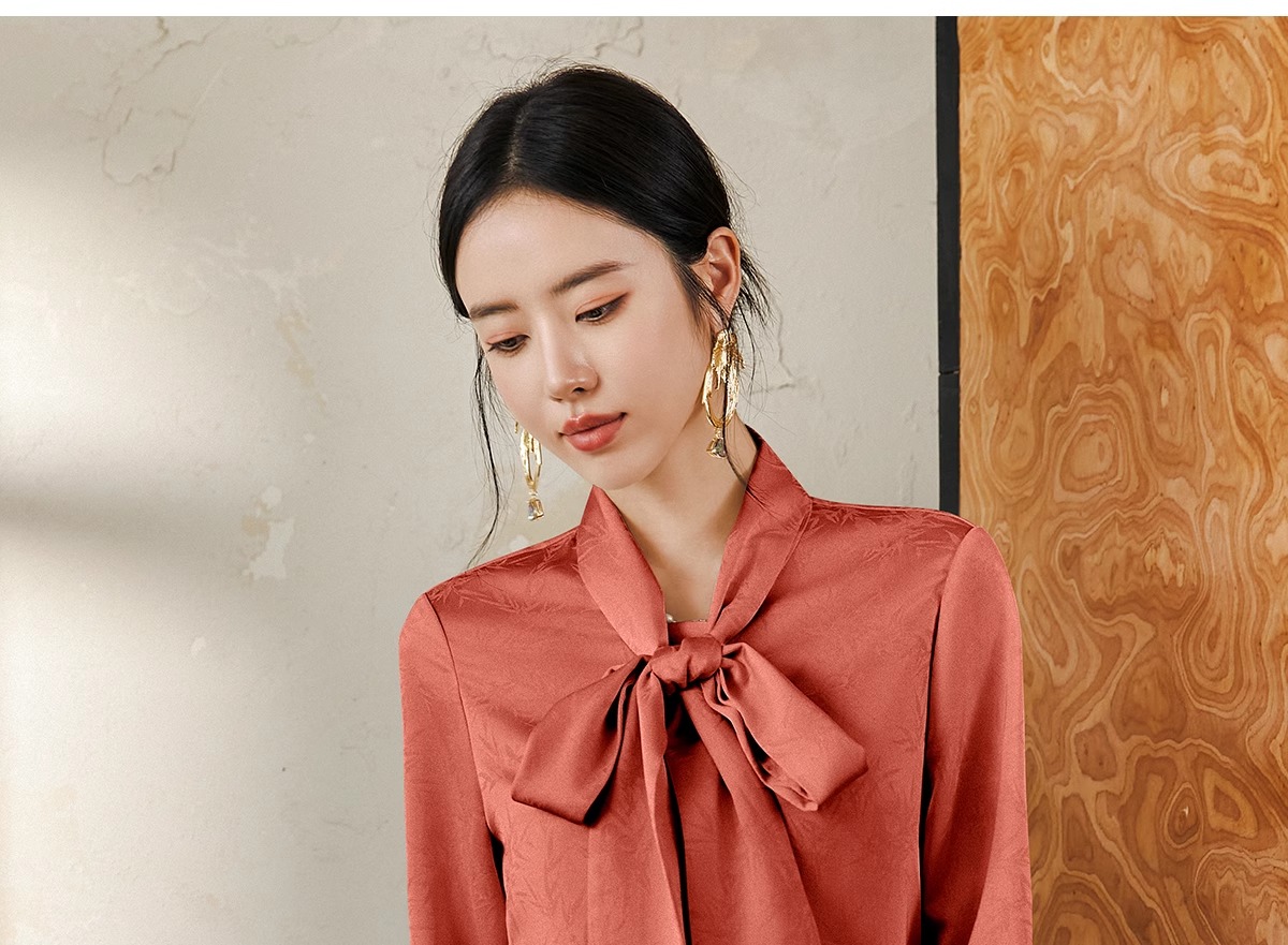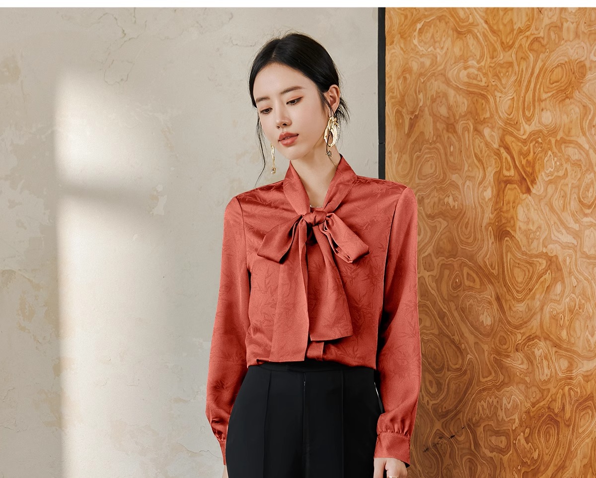 IWY/扶摇系列 提花衬衫女早秋新中式宽松长袖衬衣橘红色竹子花纹上衣 FYB557