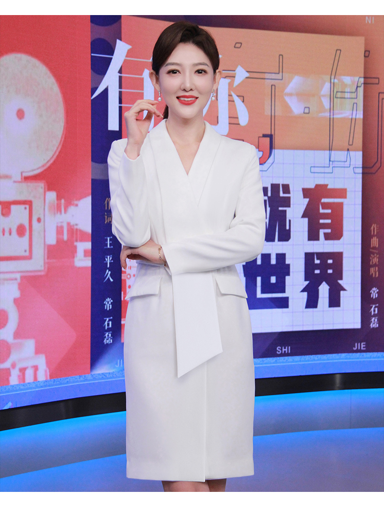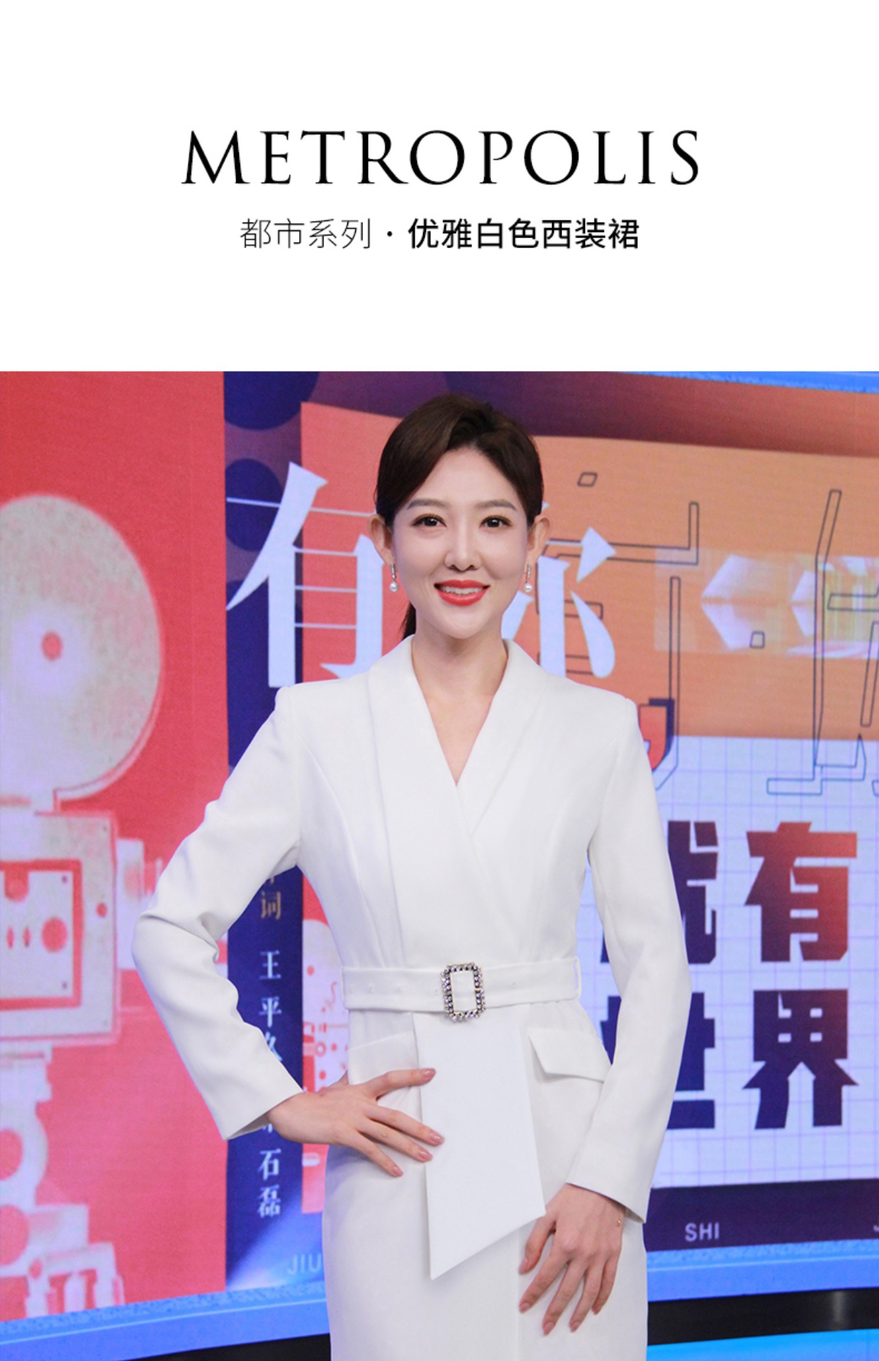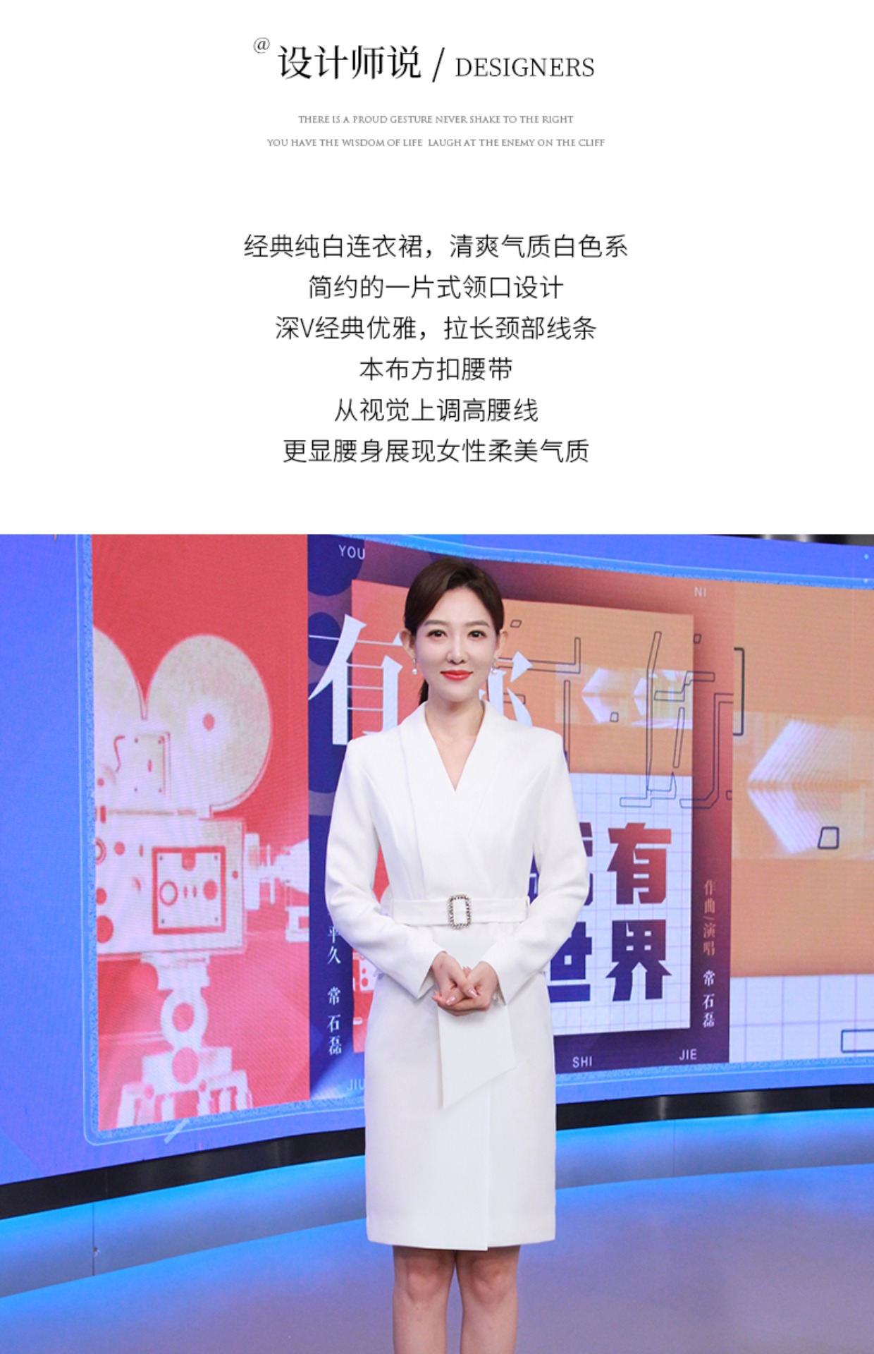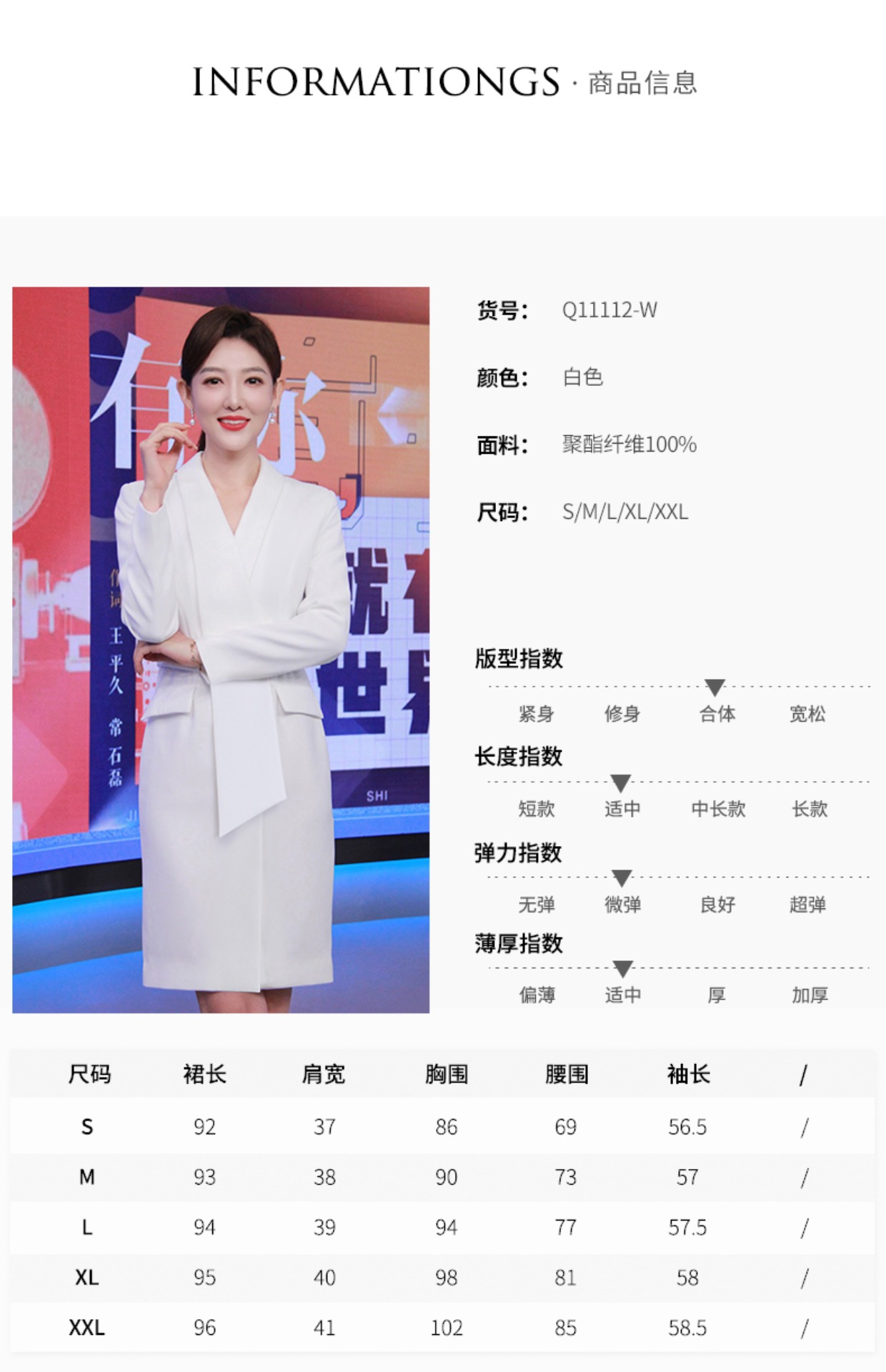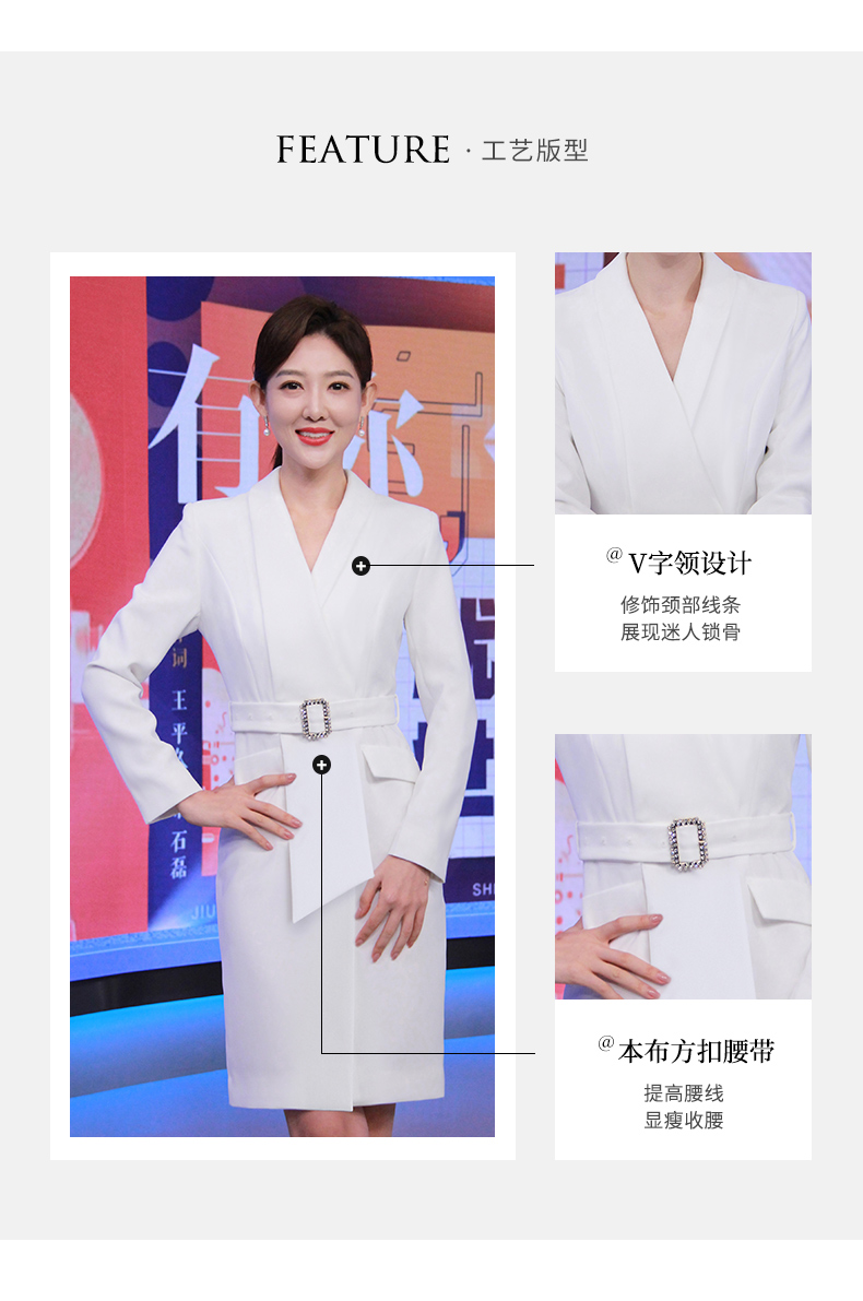 IWY/白色主持人连衣裙女长袖艺考礼服高级感教师面试正装西装裙职业装Q11112