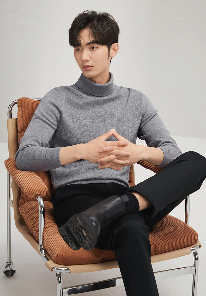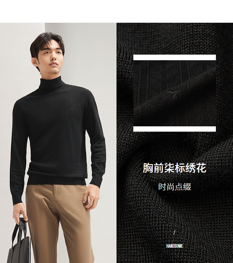 柒牌男士可翻高领羊毛衫2024秋冬新品商务休闲舒适百搭打底针织衫 127Y70630