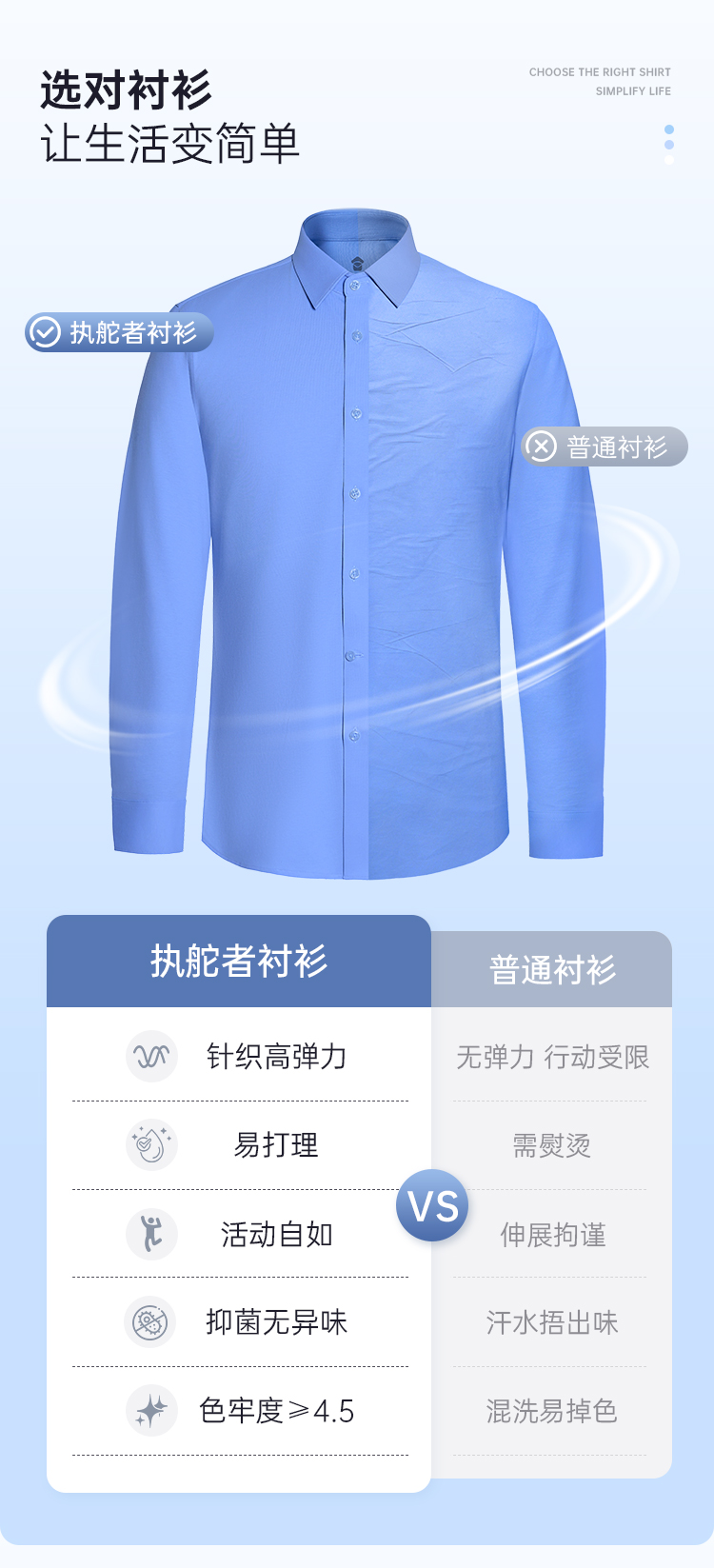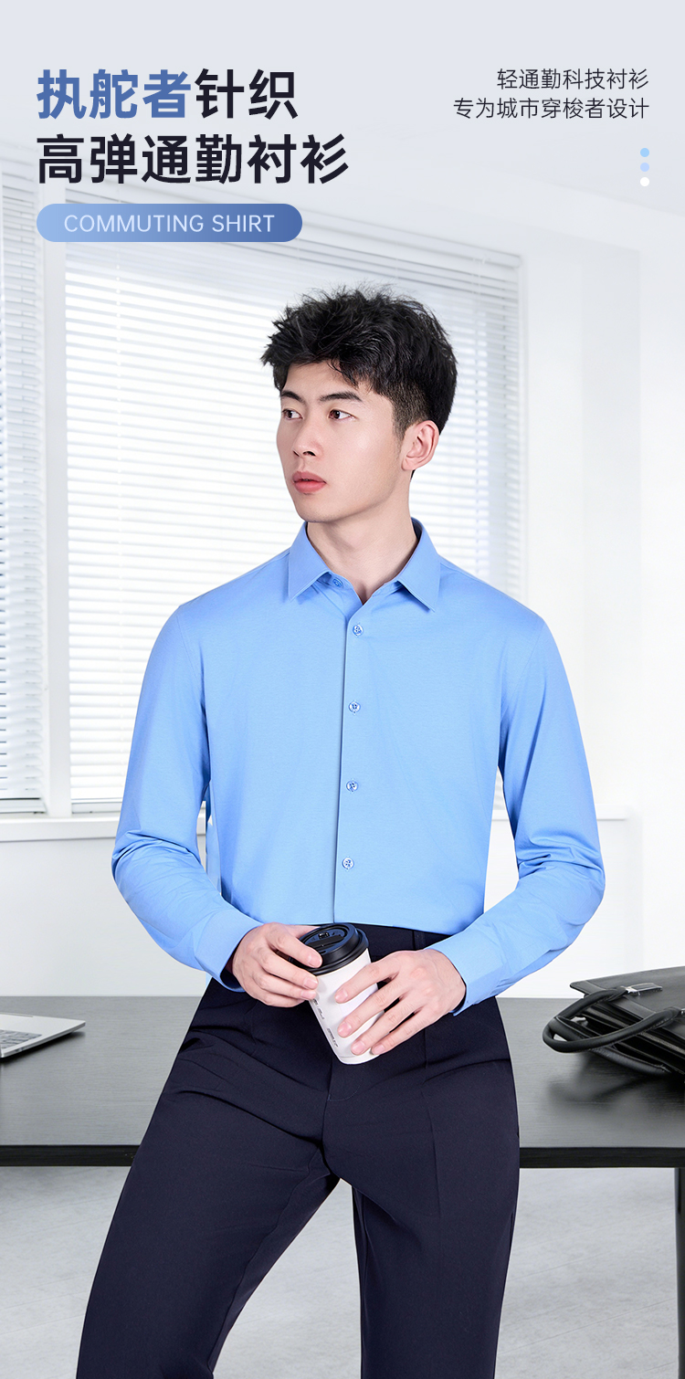【执舵者针织高弹通勤衬衫(付款后7天左右发)】商务通勤衬衫男士修身长袖衬衣CZ603