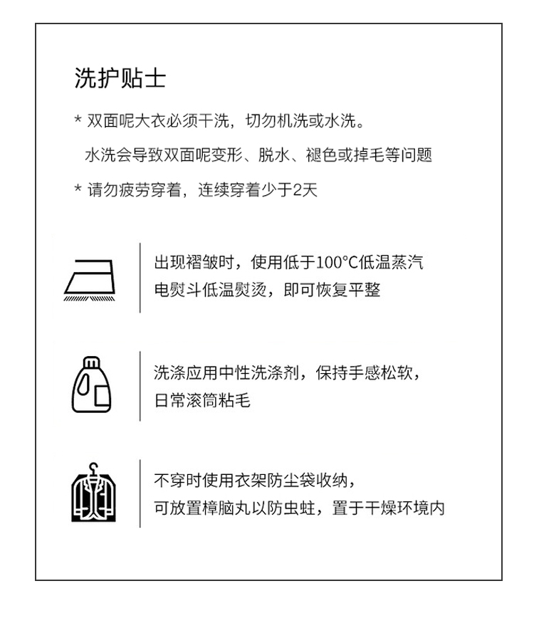 | 注意事项:建议送专业洗衣店进行护理干洗哦.禁止机洗.不可手洗. |