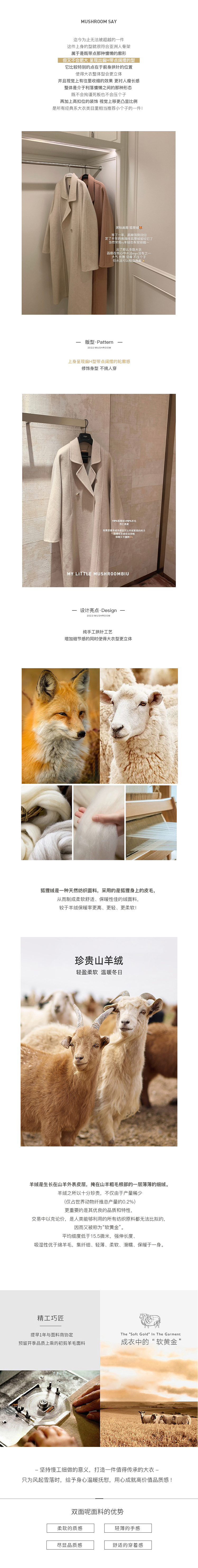 | 肉桂烤奶:10狐狸绒90羊毛杏仁燕麦:10狐狸绒90羊毛冬日奶橘:15羊绒 85羊毛馥芮白:100羊羔毛沙茶驼:10浣熊绒 90羊毛胡桃栗子:50驼绒 50羊毛雪山淡粉:10羊绒 90羊毛朗姆粉驼:10羊绒 90羊毛果木灰绿:10羊绒 90羊毛 |
