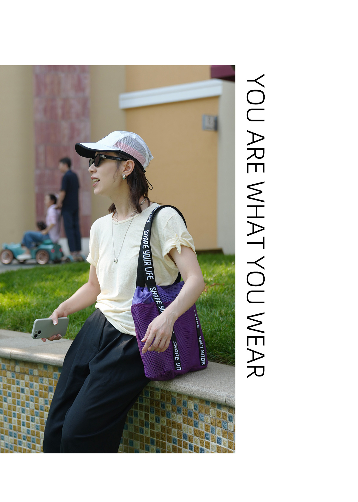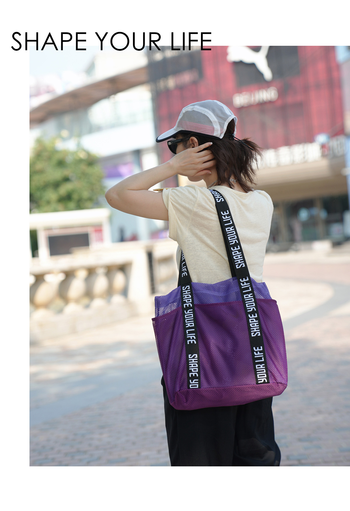 【趁早文创】Kiera Ye by 趁早双层撞色阳光包健身运动斜挎单肩包户外休闲瑜伽包网袋手提沙滩包