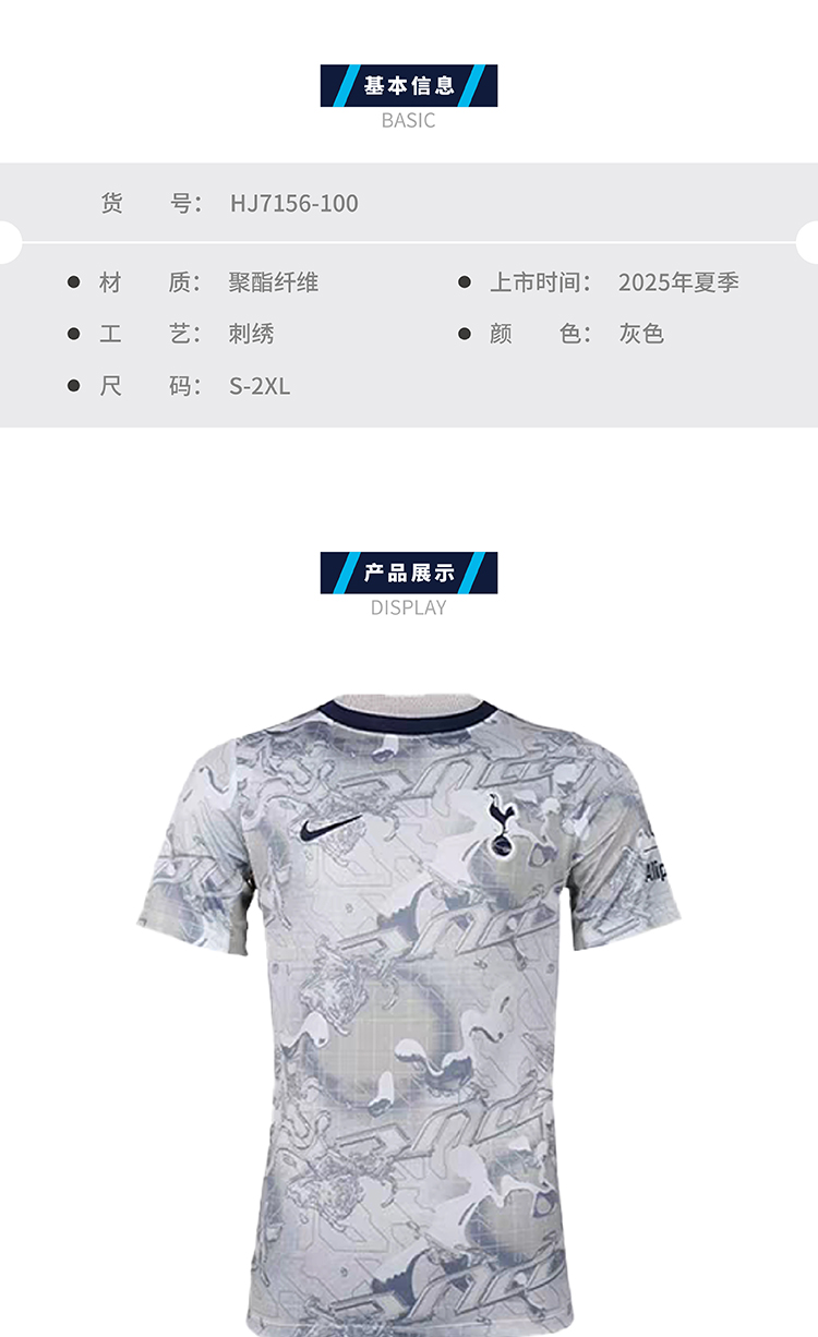 【官网同款】托特纳姆热刺俱乐部|热刺25-26赛季训练服T恤运动短袖