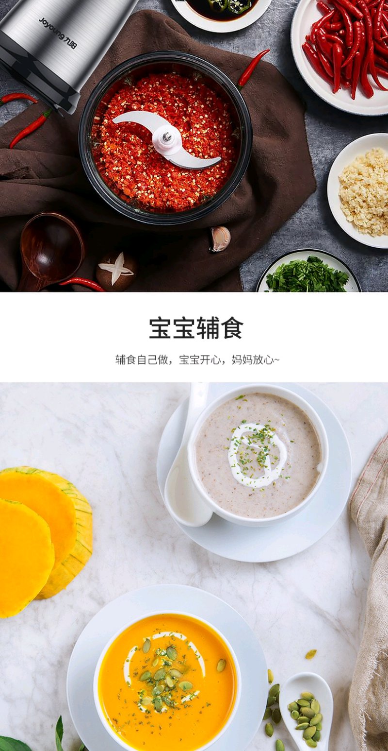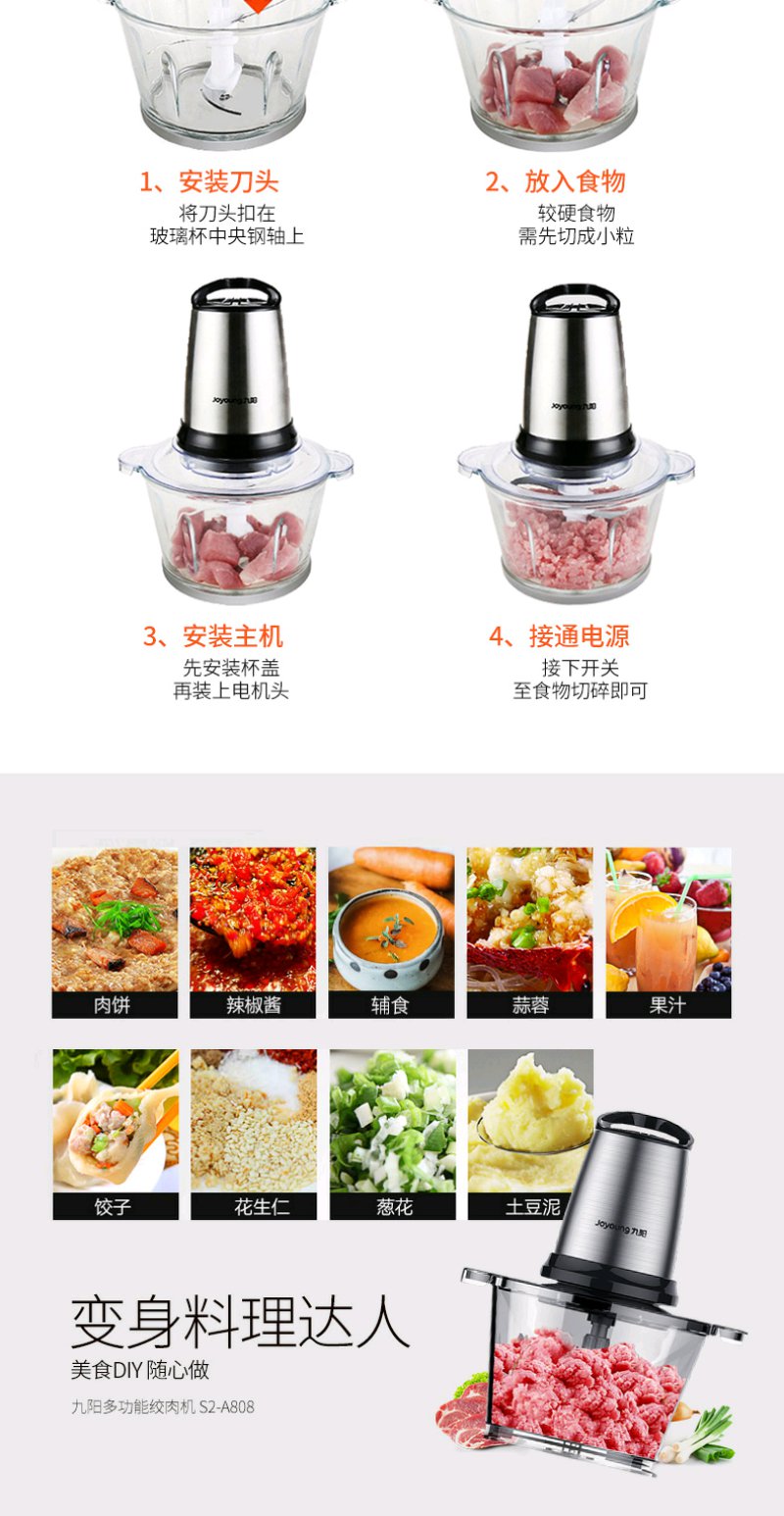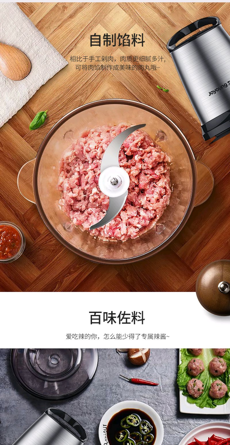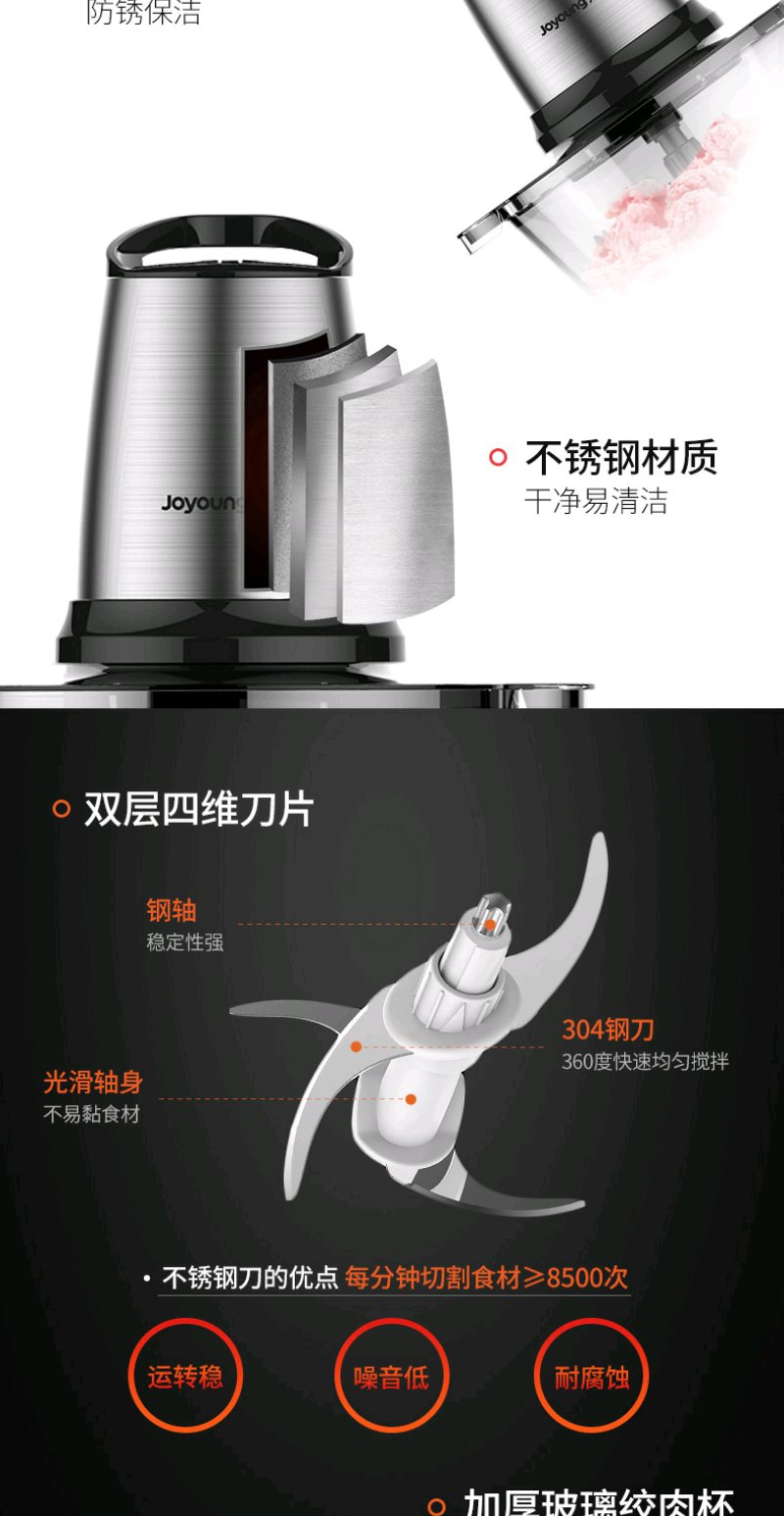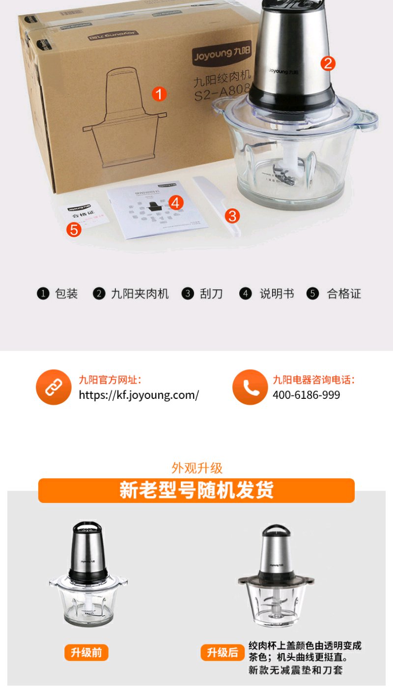 九阳(Joyoung)绞肉机家用电动多功能料理机搅拌婴儿辅食机切菜绞馅碎肉机研磨小米糊 S2-A808【邓伦推荐】
