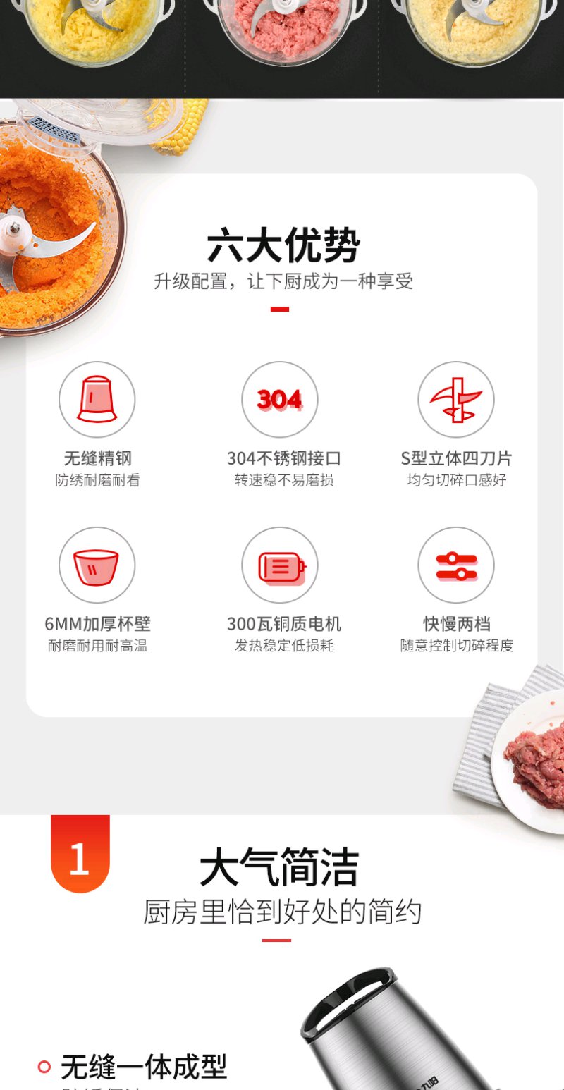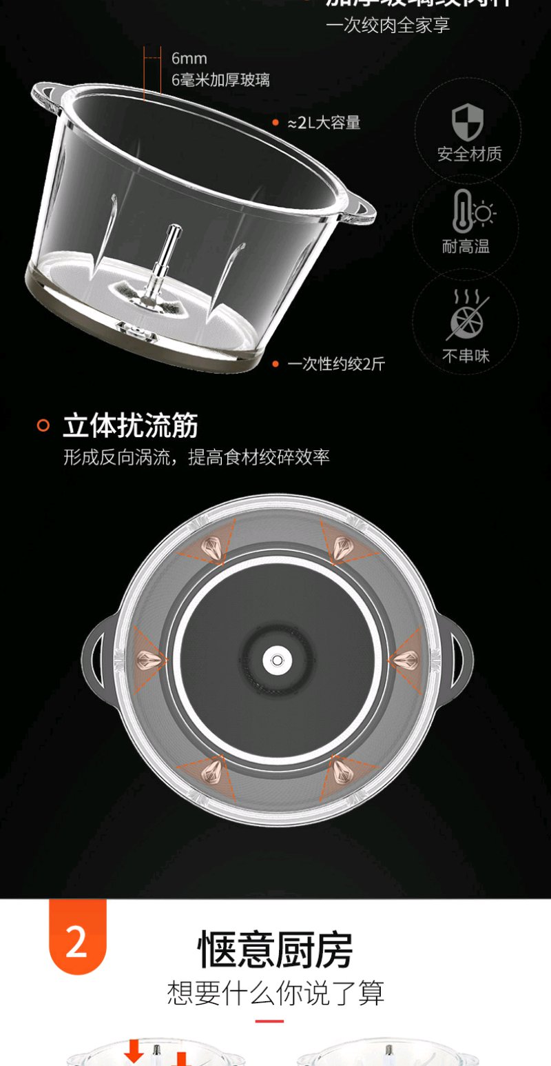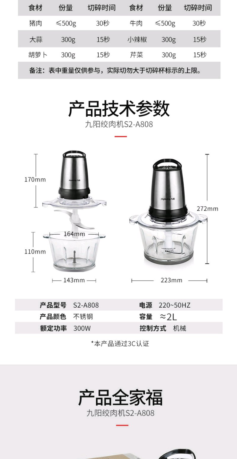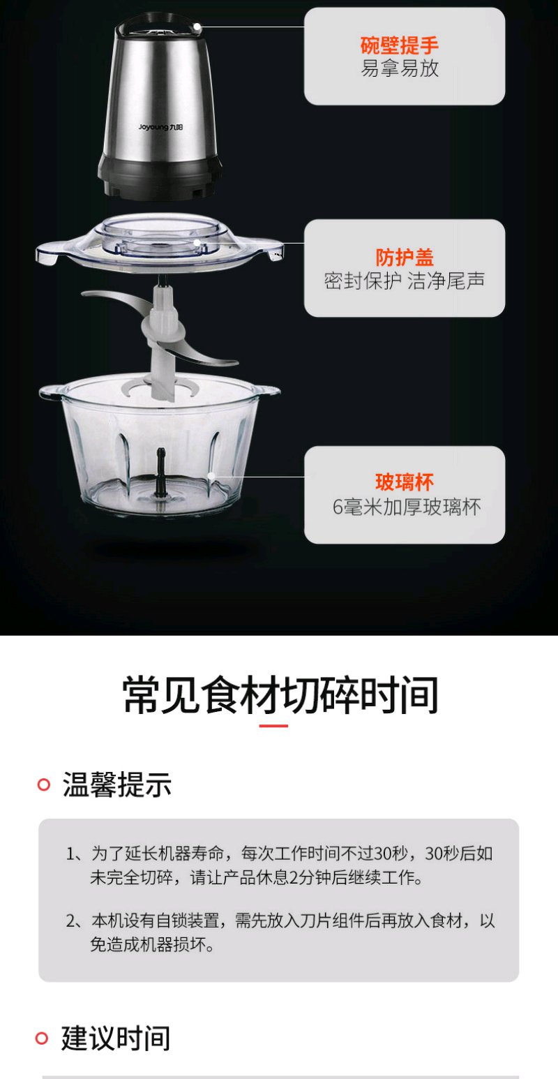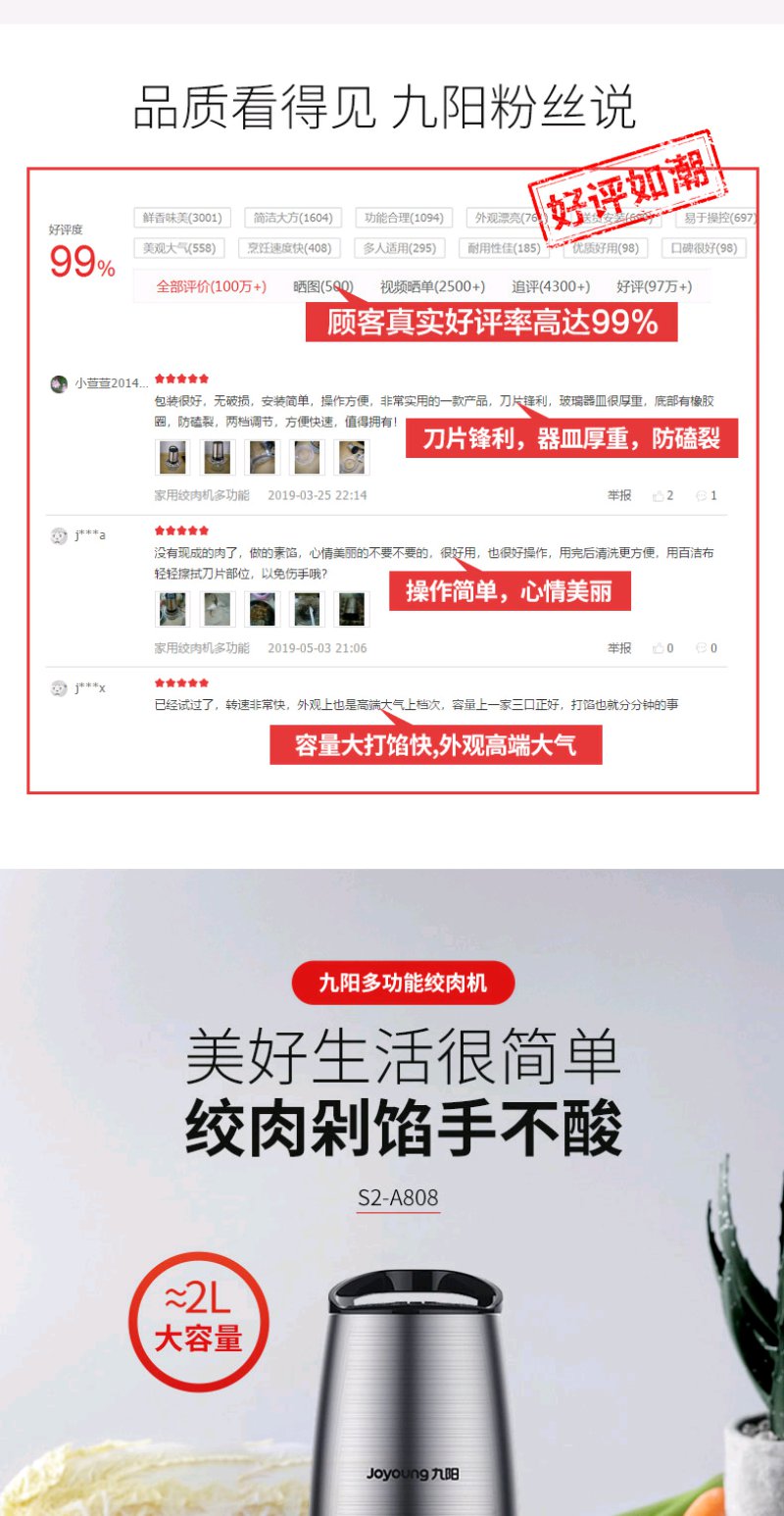 九阳(Joyoung)绞肉机家用电动多功能料理机搅拌婴儿辅食机切菜绞馅碎肉机研磨小米糊 S2-A808【邓伦推荐】