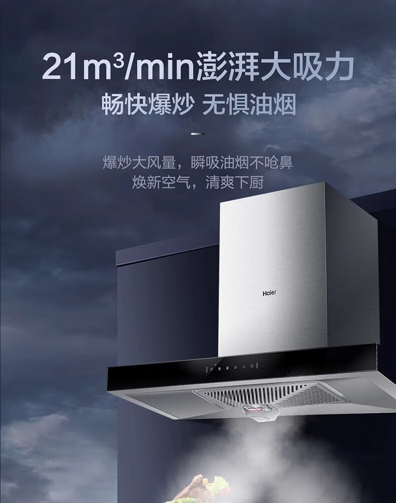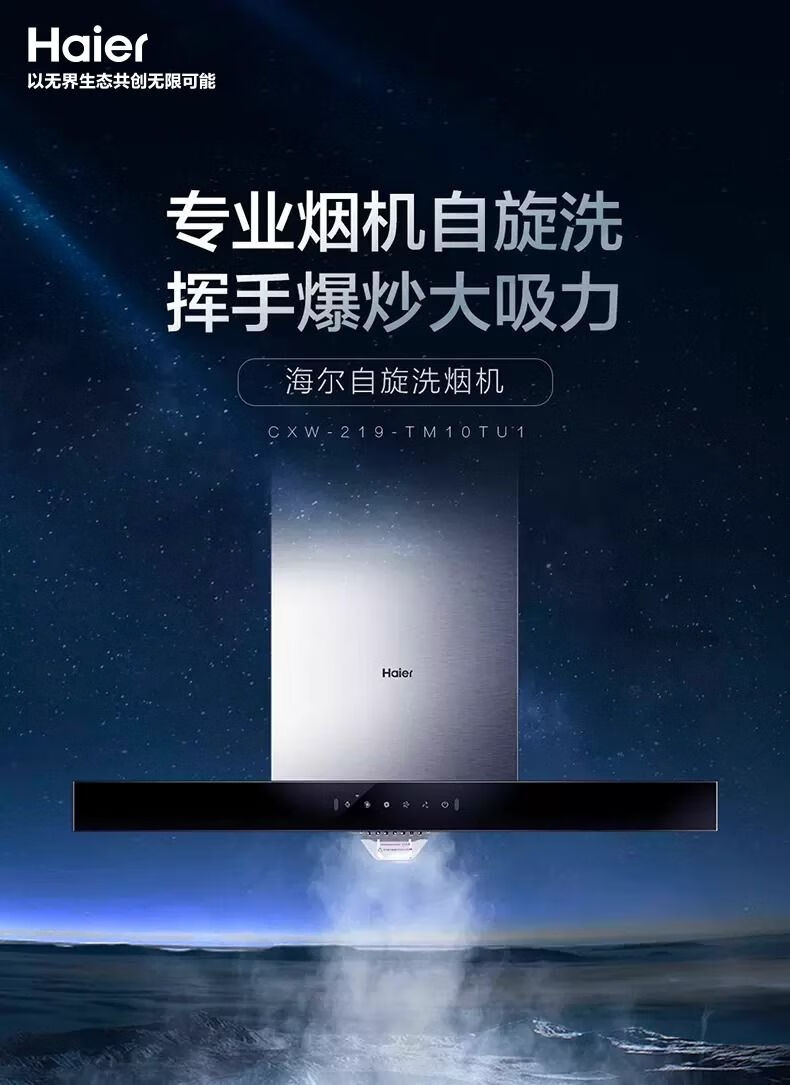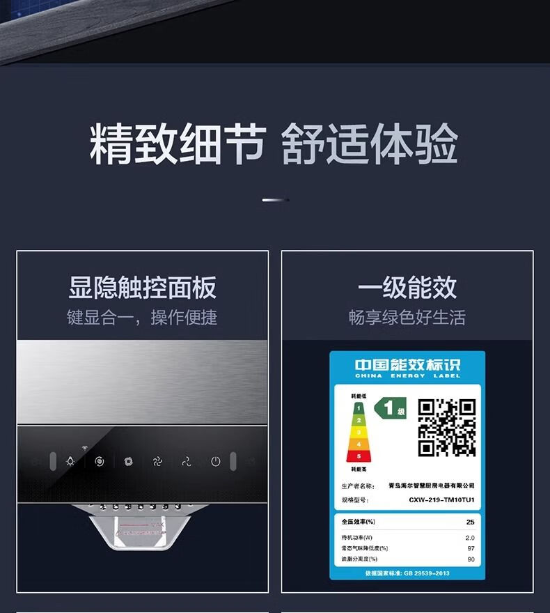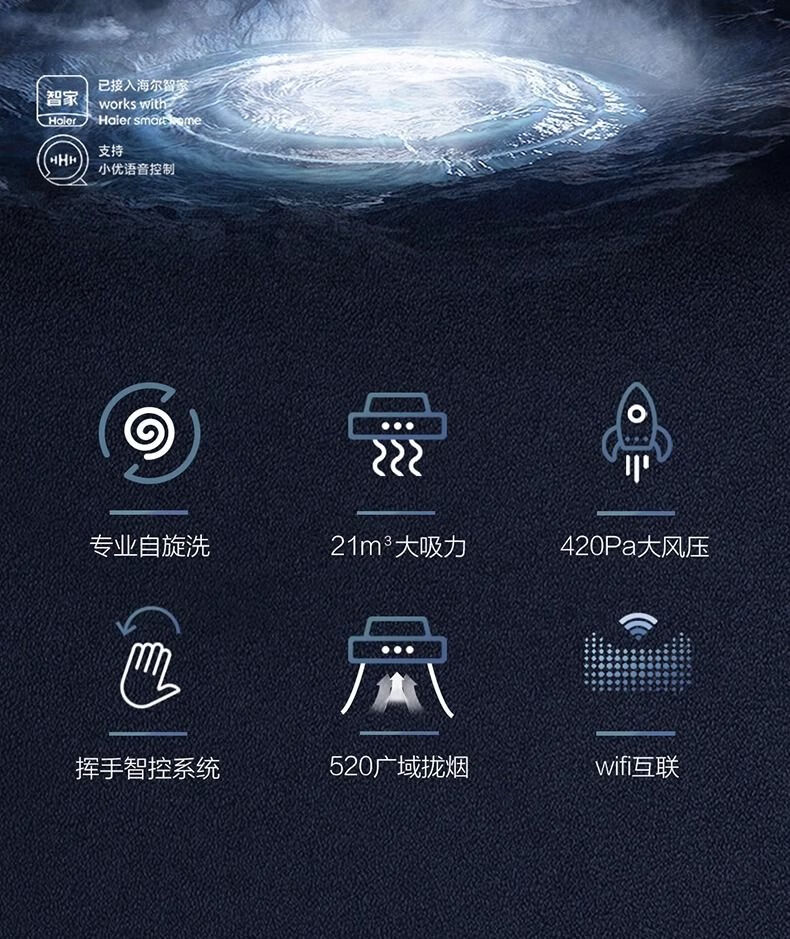 海尔大吸力家用油烟机挥手感应高速自旋清洗智能油烟机 CXW-219-E900T23
