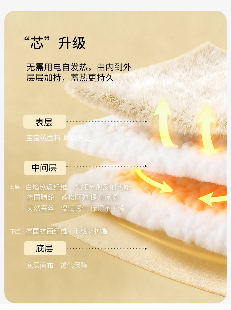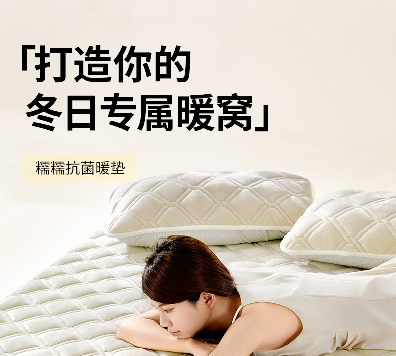 【躺下即暖】一默 糯糯抗jun暖垫 自发热混纺科技 白焰热返纤维与腈纶 高效温暖体验快速升温,添加桑蚕丝 亲肤柔软;Lastin德国抗jun纤维 长效抑jun防护;A类母婴级可机洗