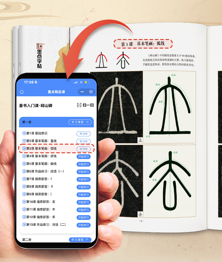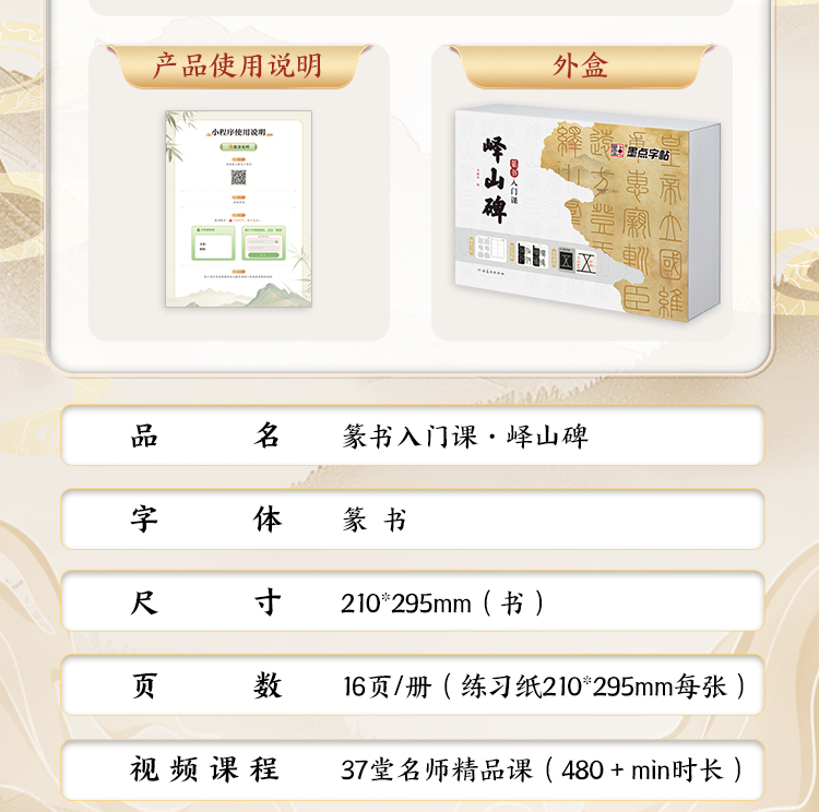 篆书入门课·峄山碑 毛笔书法等级考试用书 篆书视频课程 书法培训小篆篆书入门教程练字帖套装