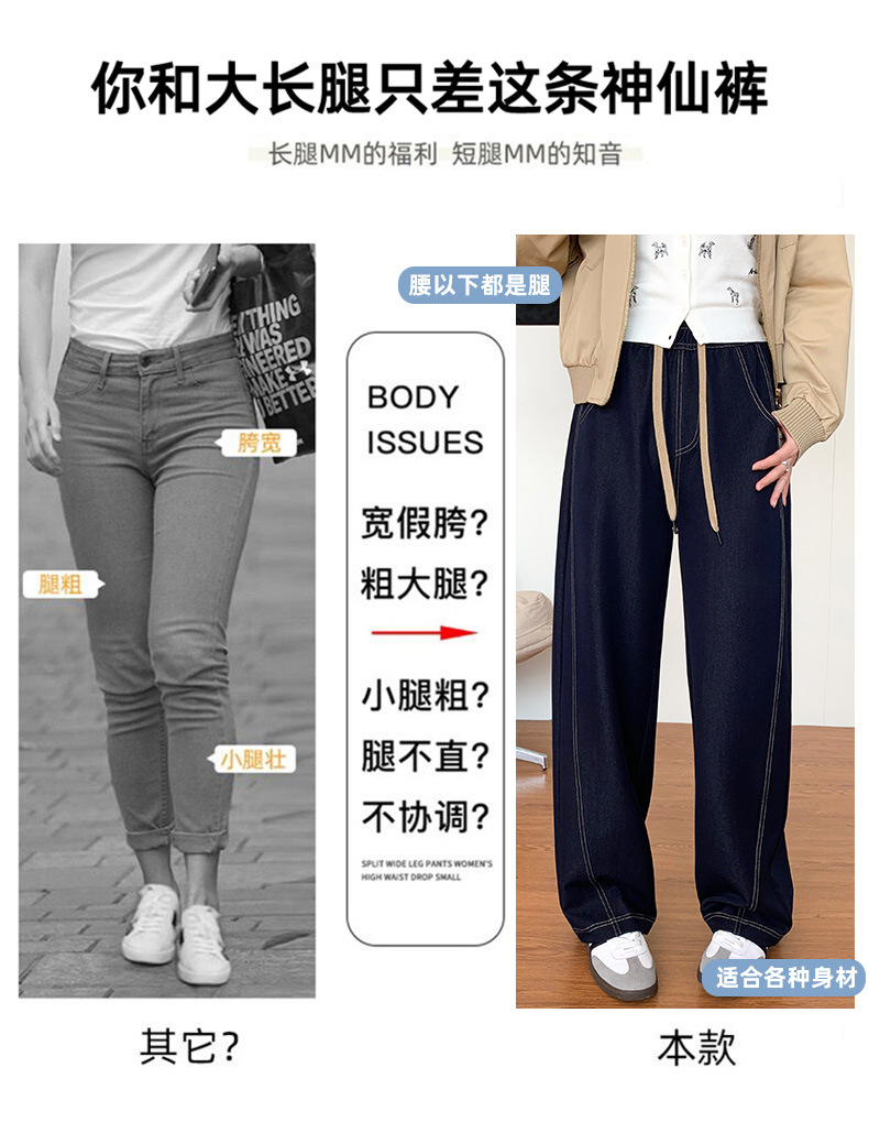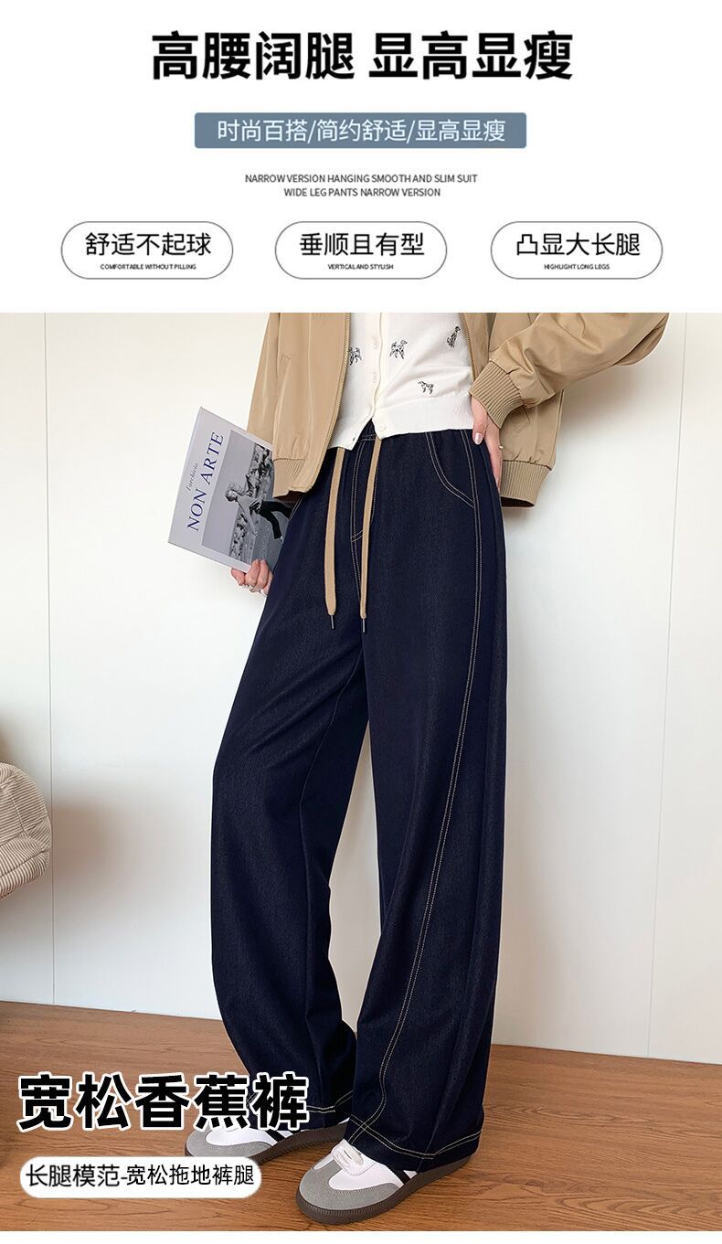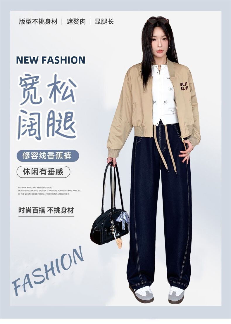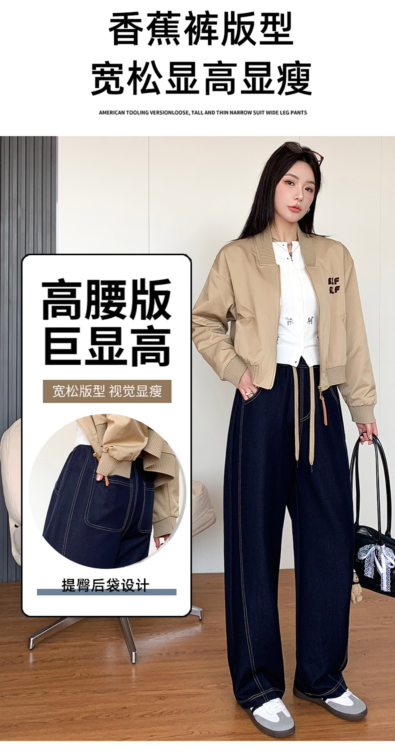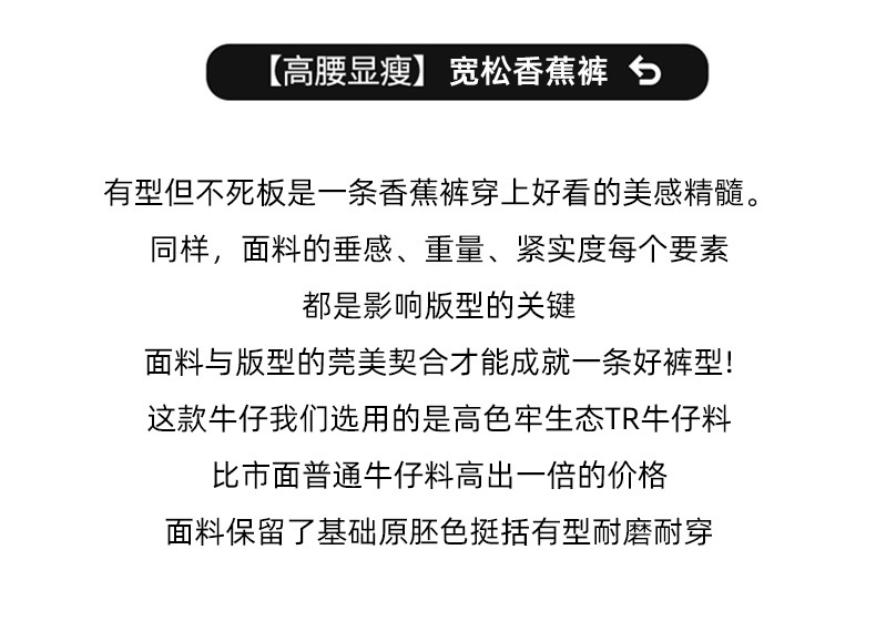 春夏季高腰显瘦宽松牛仔香蕉裤 亲肤垂顺柔软牛仔面料