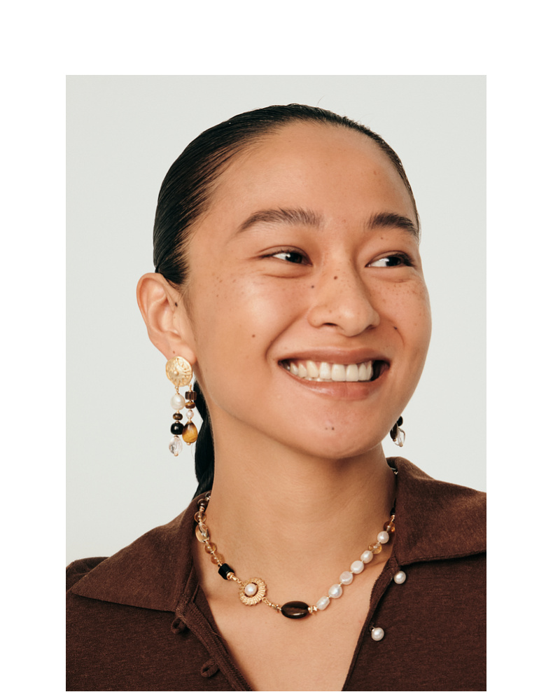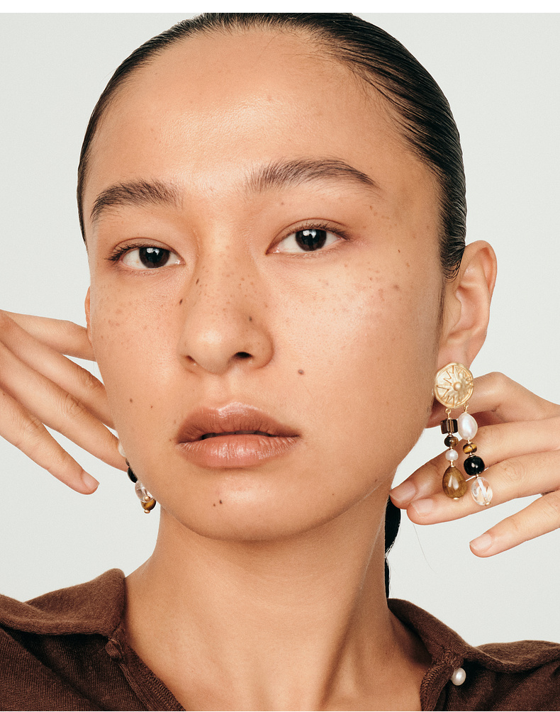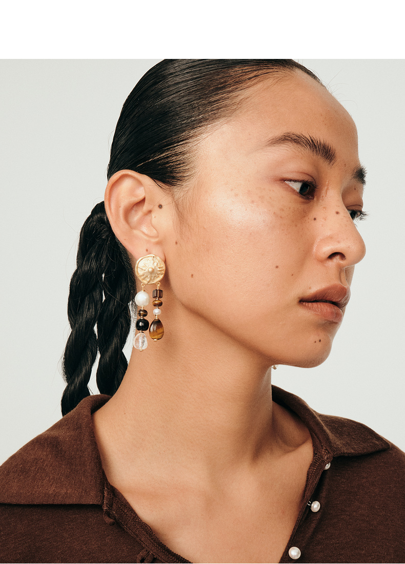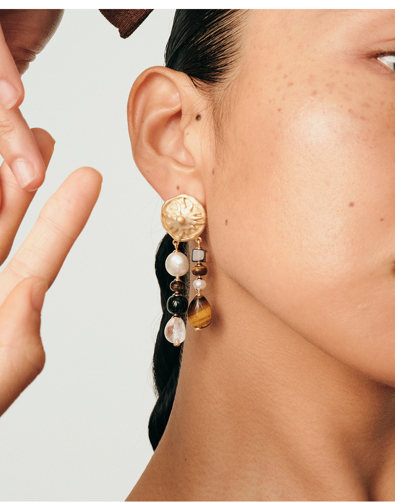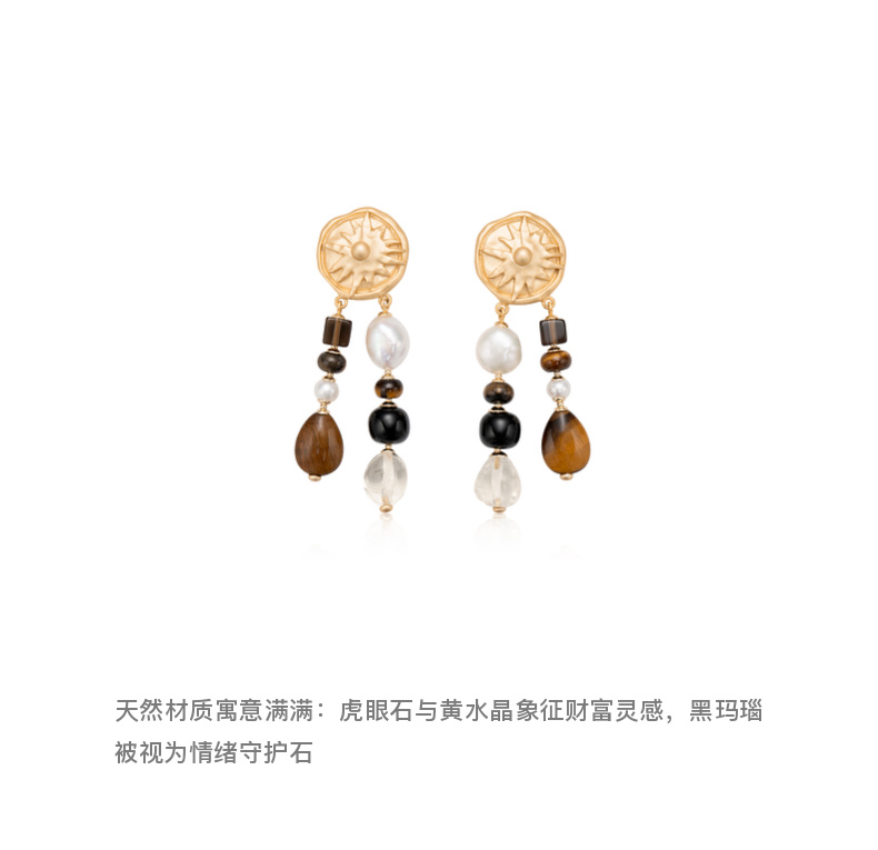 送女友lost in echo2025早秋新款异域太阳虎眼石珍珠流苏耳环耳饰
