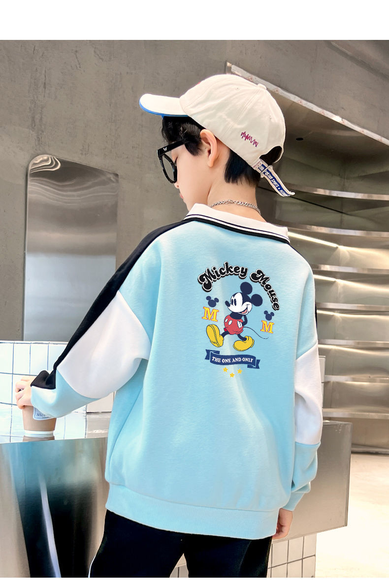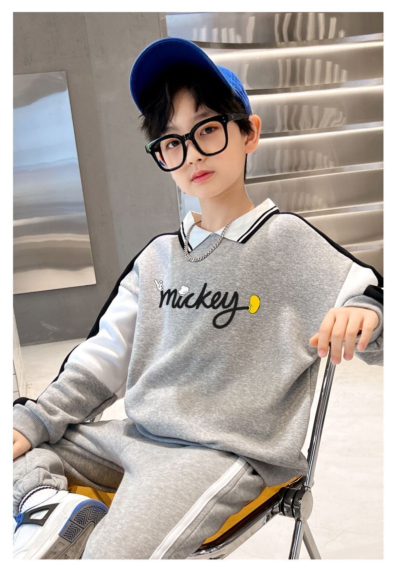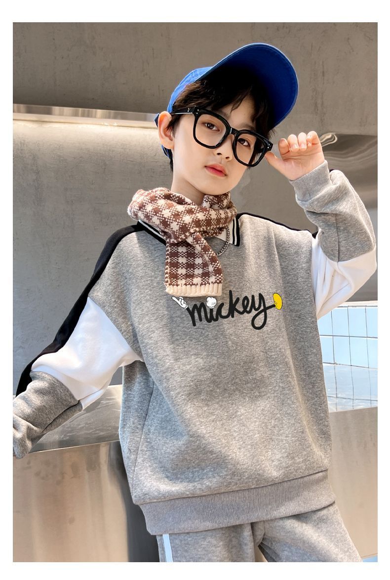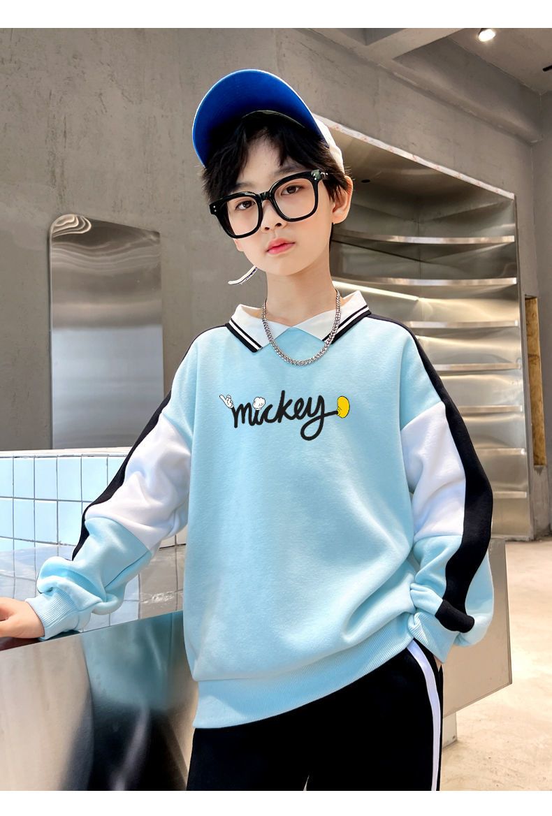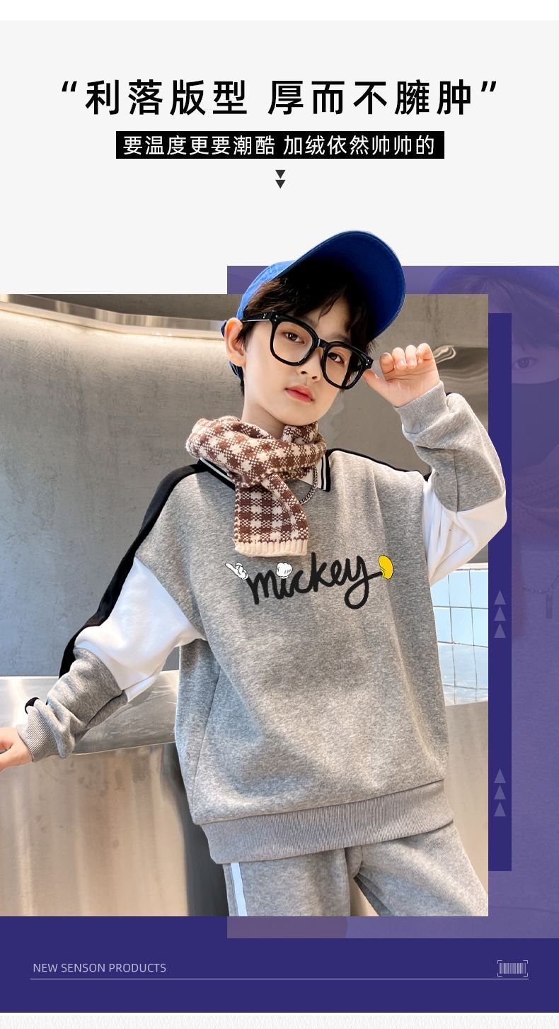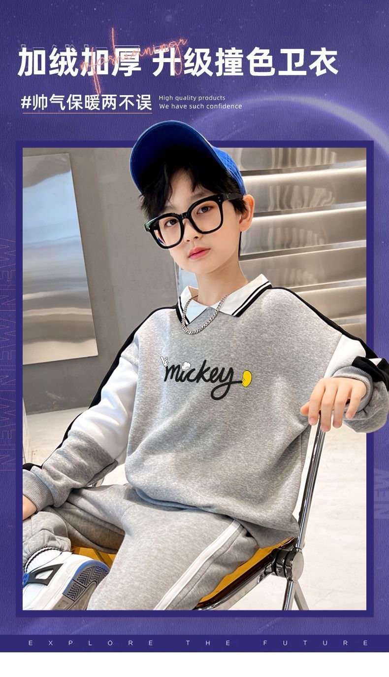 迪士尼男大童加绒卫衣男童打底衫内搭秋冬儿童保暖衣冬季加厚上衣