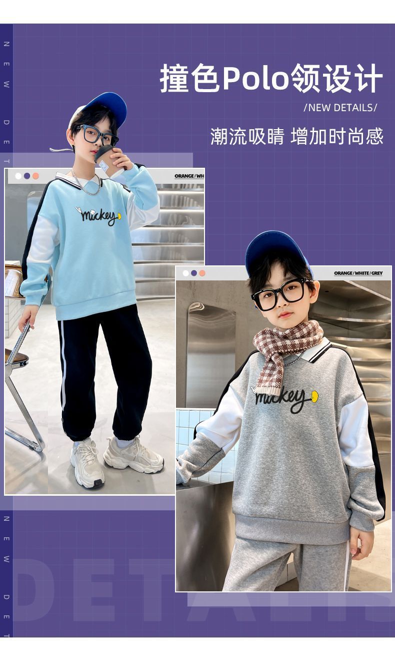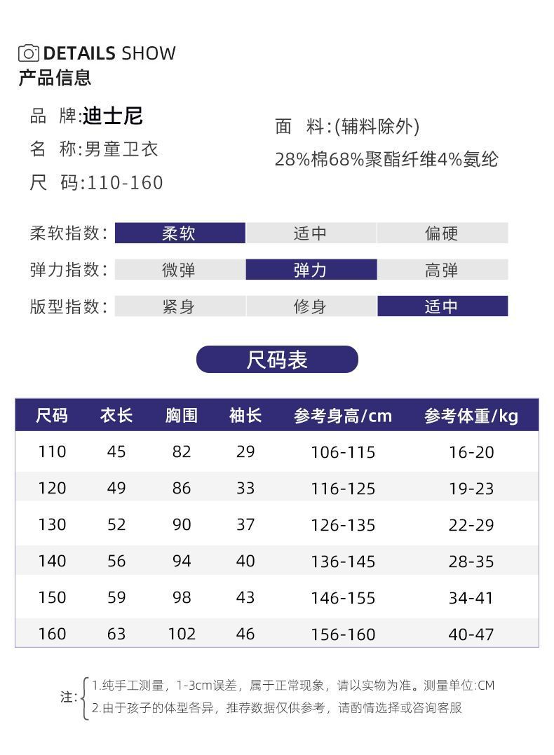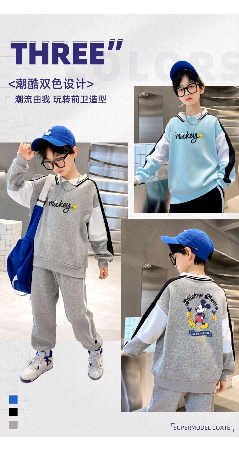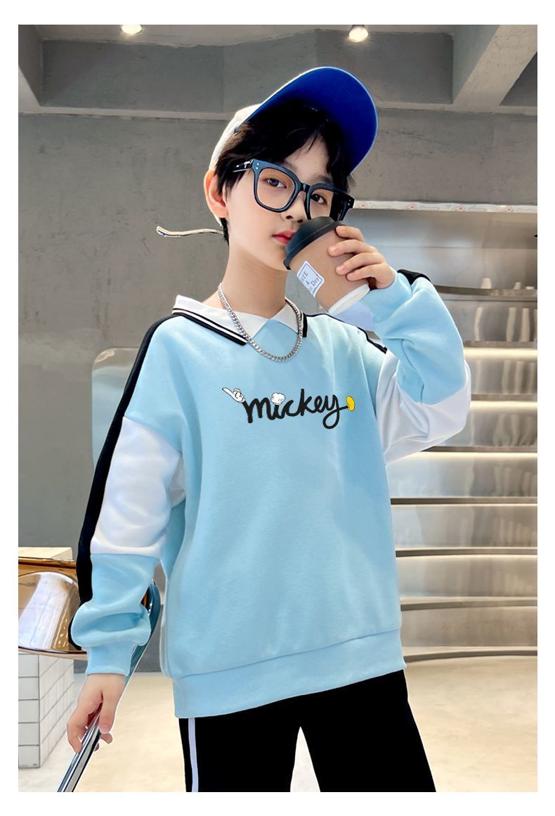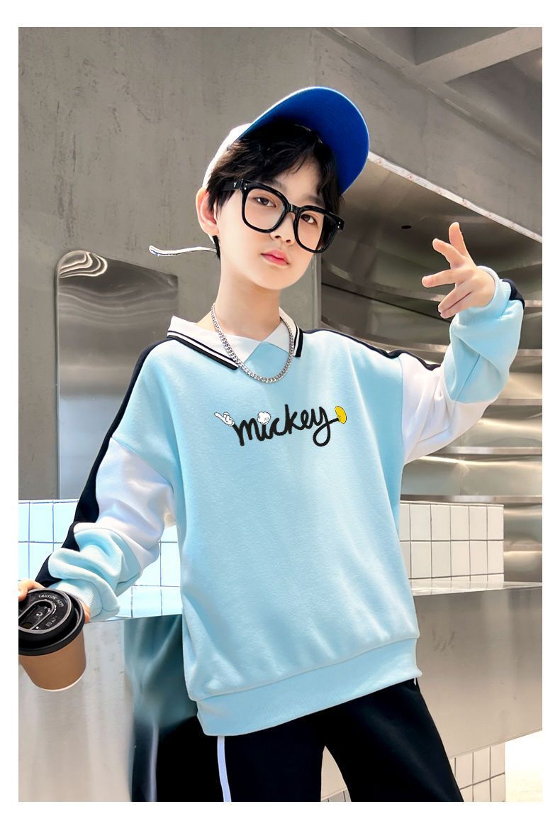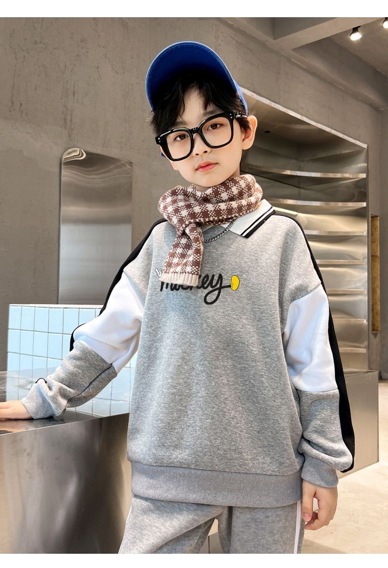 迪士尼男大童加绒卫衣男童打底衫内搭秋冬儿童保暖衣冬季加厚上衣