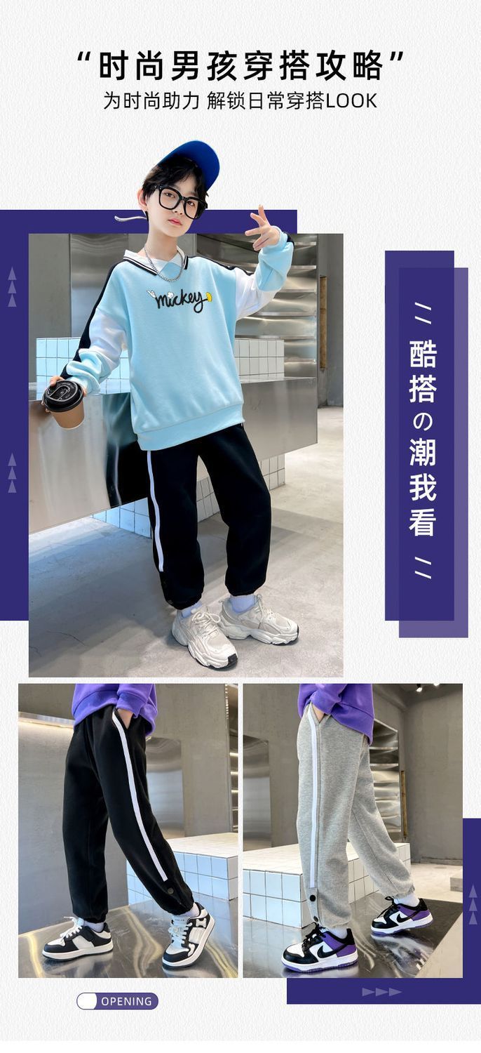 迪士尼男童裤子春秋款2024新款儿童运动裤炸街卫裤秋装帅气休闲裤